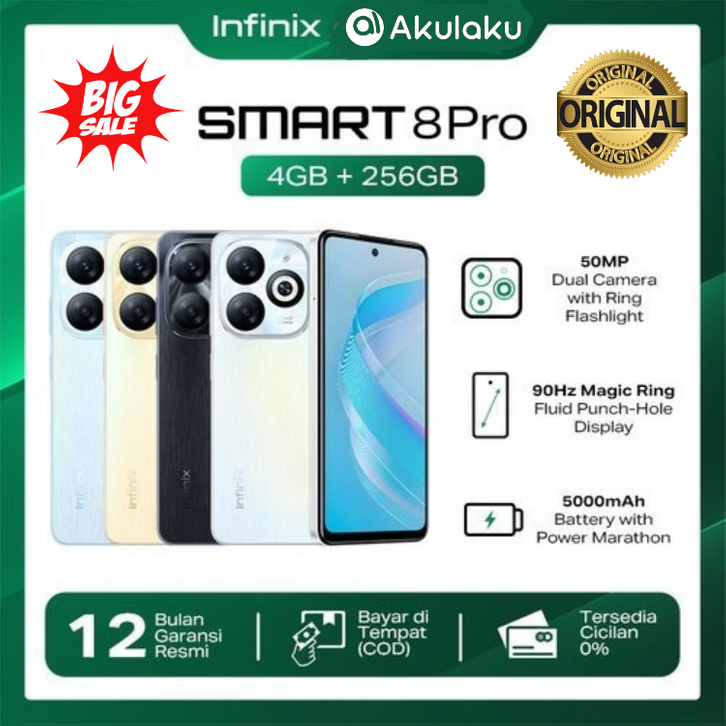 Hp Terbaru Infinix Smart 8 Pro 4/256GB- Up to 8GB Extended RAM - 6.6" 90Hz Puch Hole Display - Helio G36 - 5000 mAh