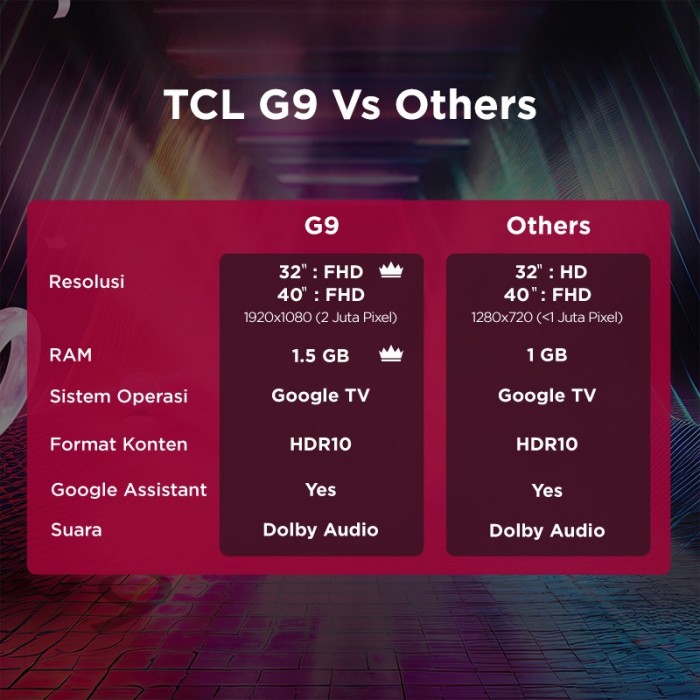TCL 32 INCH GOOGLE TV - 32G9 - FHD - GOOGLE AUDIO - WIFI - 32G9