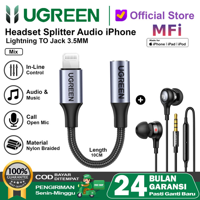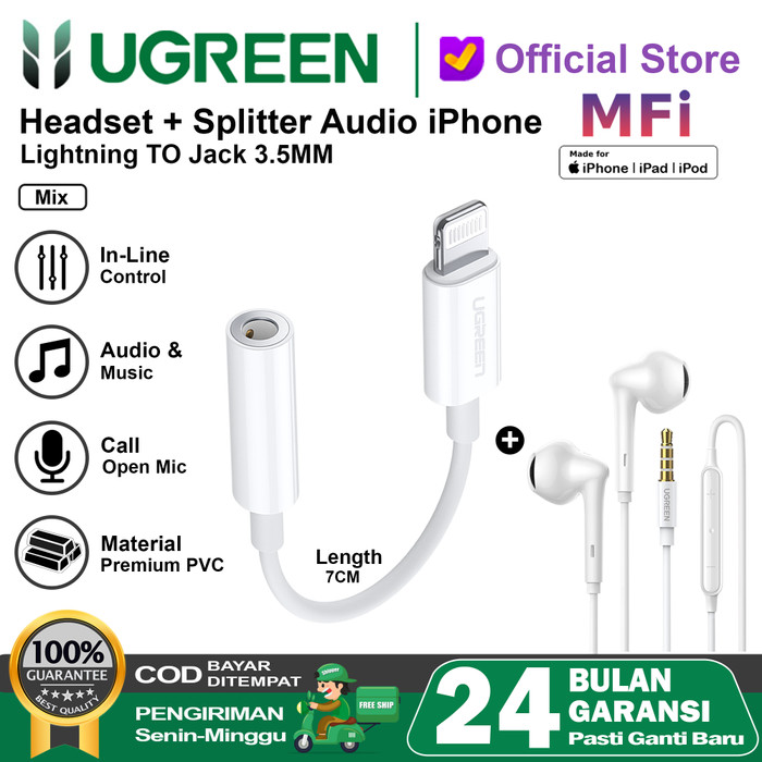 UGREEN SPLITTER IPHONE MFI LIGHTNING TO JACK 3.5MM 30759 30756 - 30759 WHITE