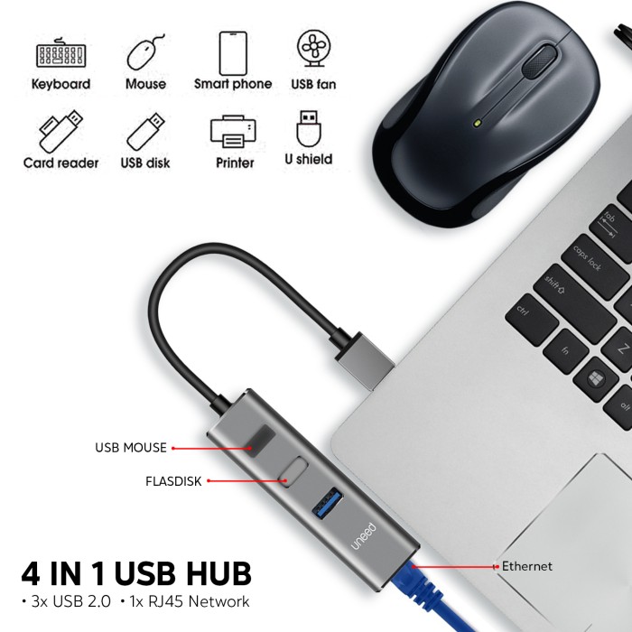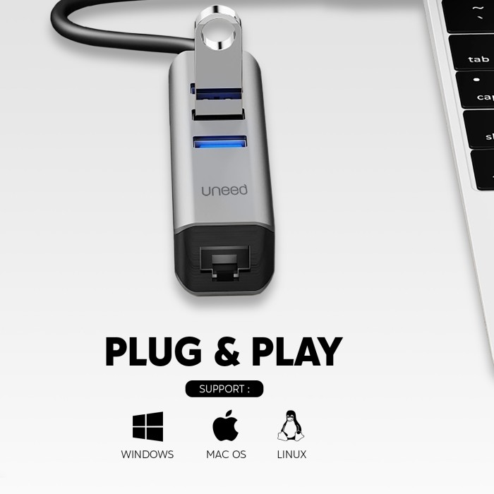 UNEED ADAPTER USB HUB TO LAN ETHERNET RJ45 + 3PORTS USB A - UUH104