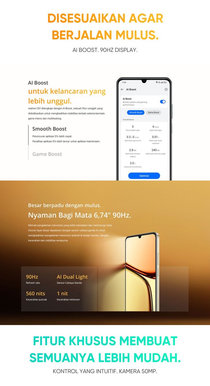 realme C61 8/128GB 50MP AI Camera 90Hz - 45W Fast Charge - Powerful Octa-core Chipset AI Boost Engine,realme c61