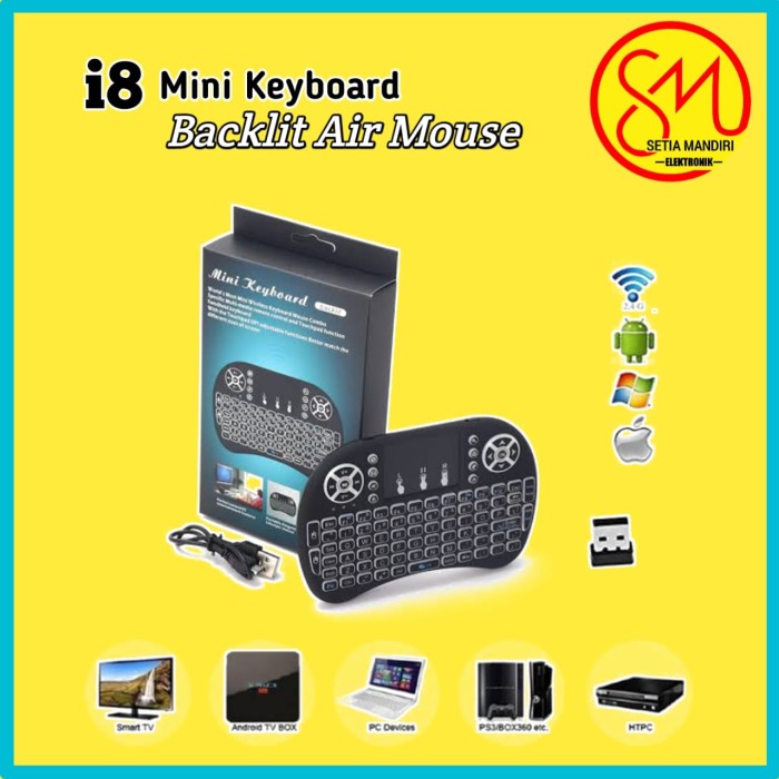 MINI KEYBOARD WIRELESS I8 2.4G HANDHELD KEYBOARD UNTUK SMART TV TV BOX - I8 LITHIUM