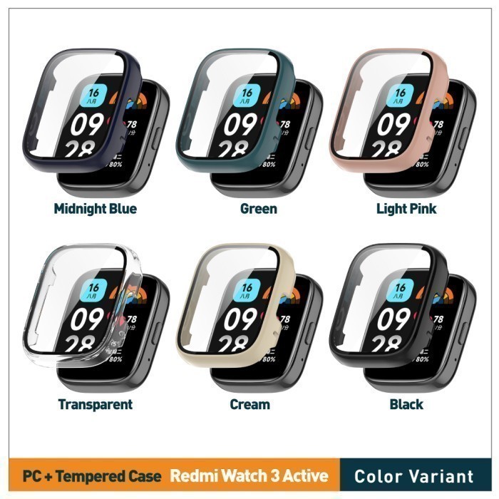 HARD CASE PC BUMPER 2IN1 FOR REDMI WATCH 3 ACTIVE WITH TEMPERED GLASS - TRANSPARENT