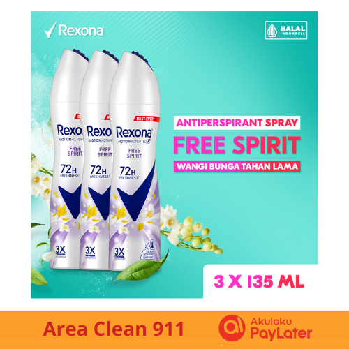 [ 3 Botol ] Deodorant Rexona Antiperspirant Spray Free Spirit 3 x 135ml
