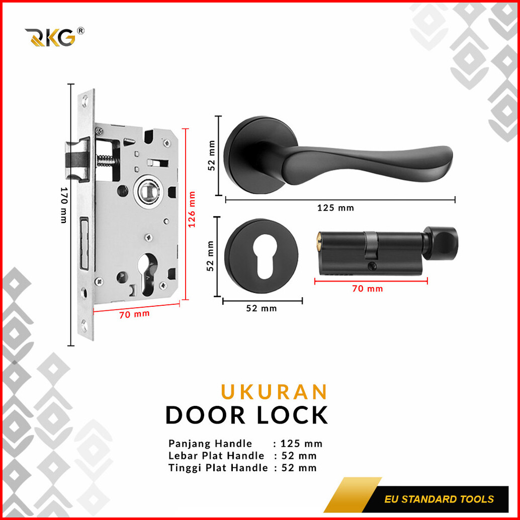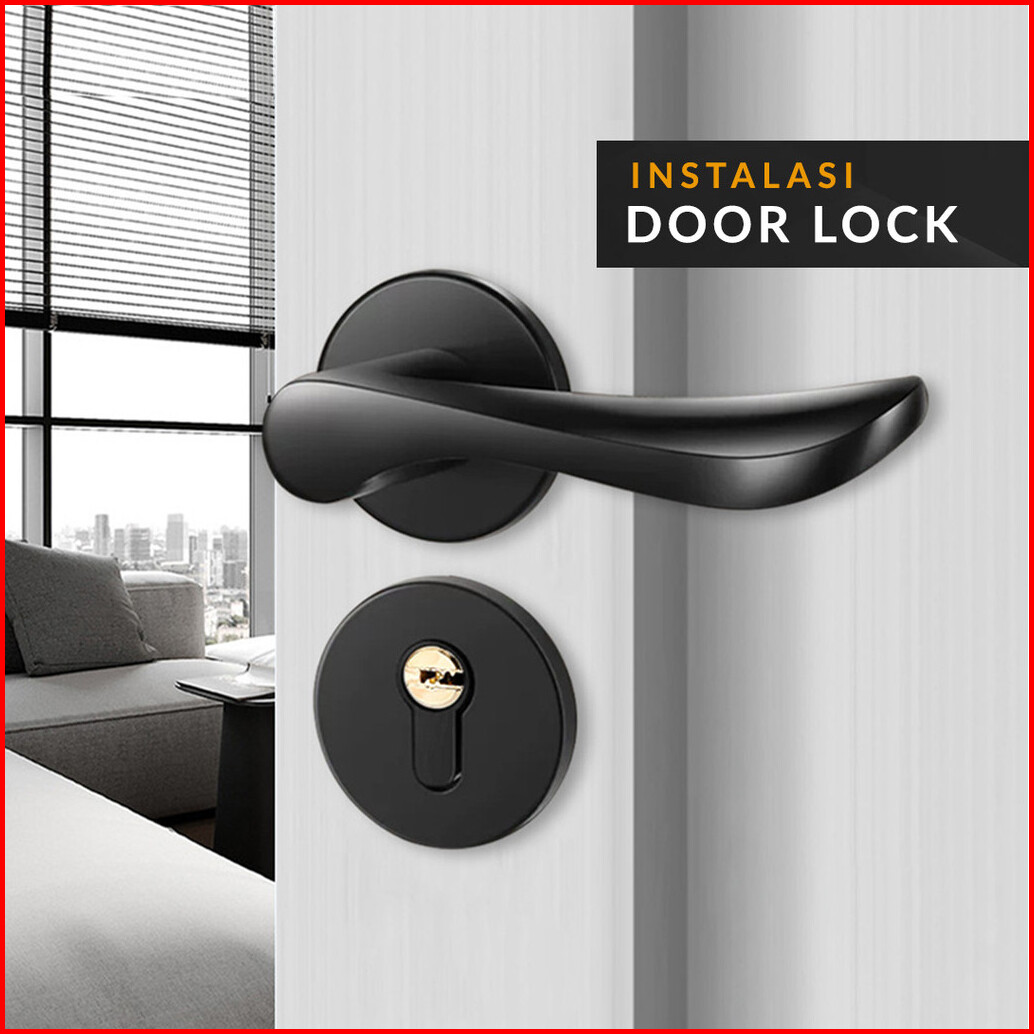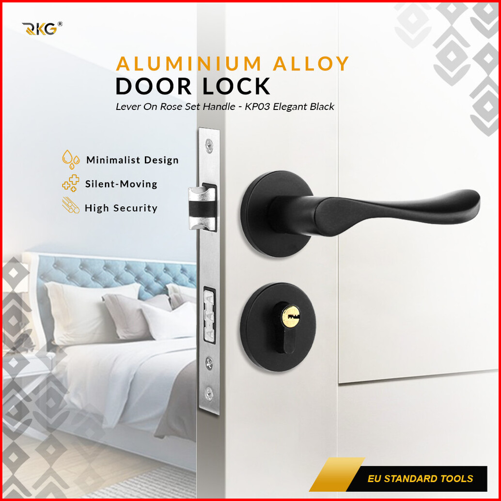Kunci Pintu Roses Elegant Black Curved Silent Door Lock Set Drl-500sv