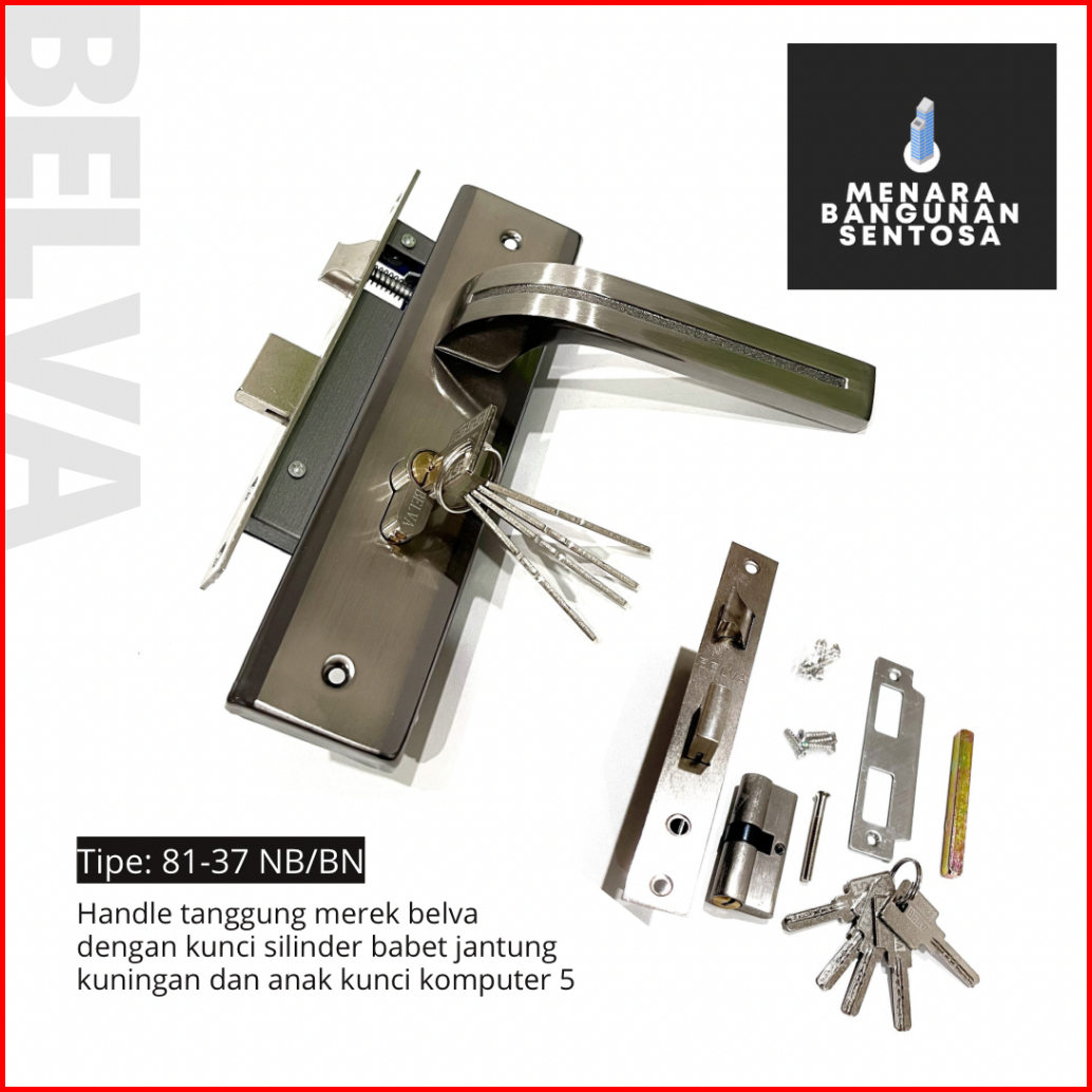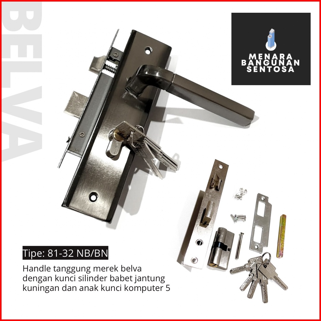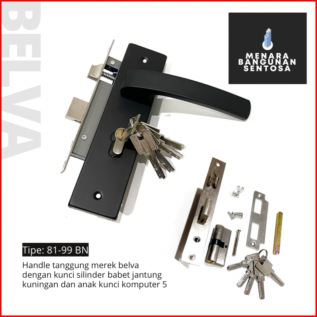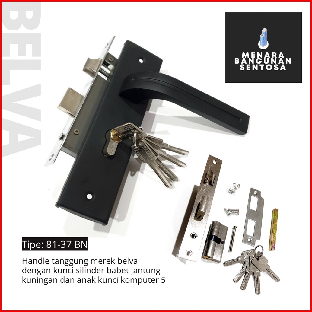 Seri Hitam Handle Pintu Set Tanggung Belva - Kunci Tarikan Pegangan Gagang Kotak Jagung Sedang