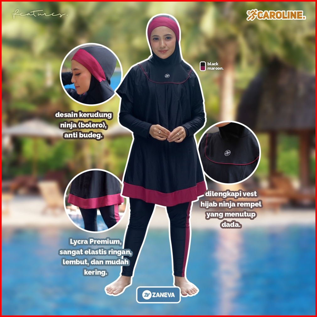 Zaneva - Caroline Swimwear Setelan Renang Muslimah Syar I Atas Bawah