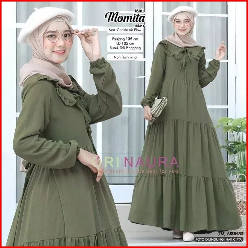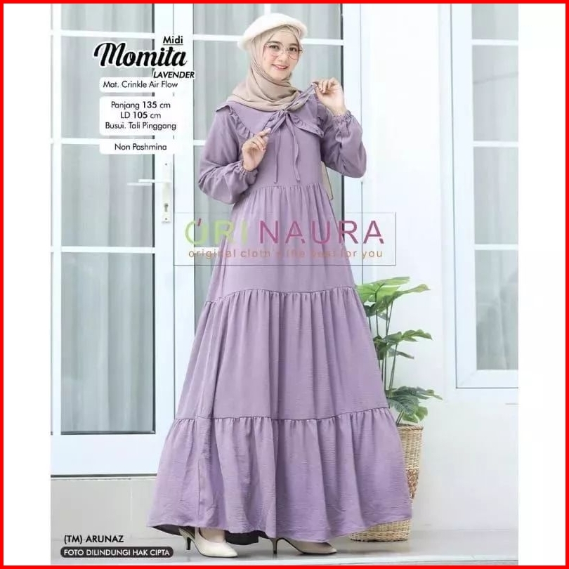 Momita Gamis Midi Dress Crinkle Airflow Premium Wanita Busui Simple Mewah Elegan