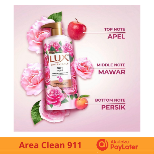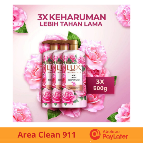 3 Botol Sabun Mandi Lux Botanicals Cair Soft Rose 500g x3