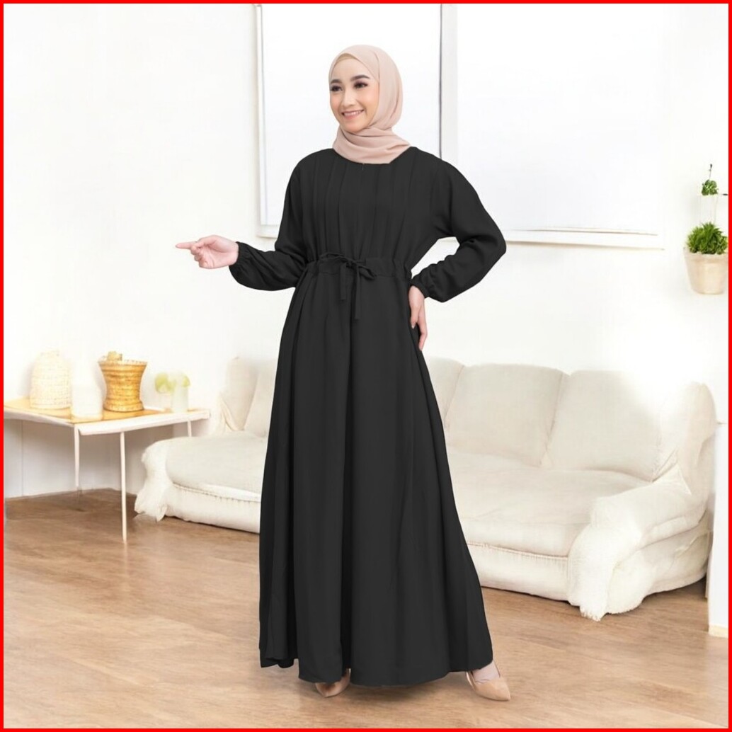 Gamis Hitam Polos Melia Dress Size S M L Xl Baju Daily Wear Kekinian Bahan Cey Crinkle Ootd