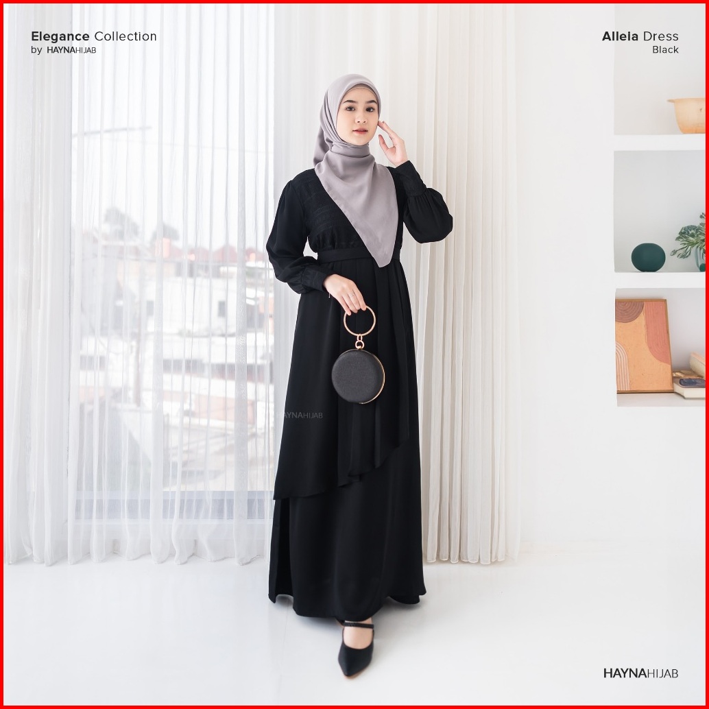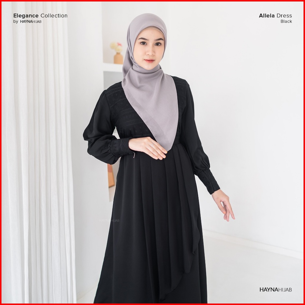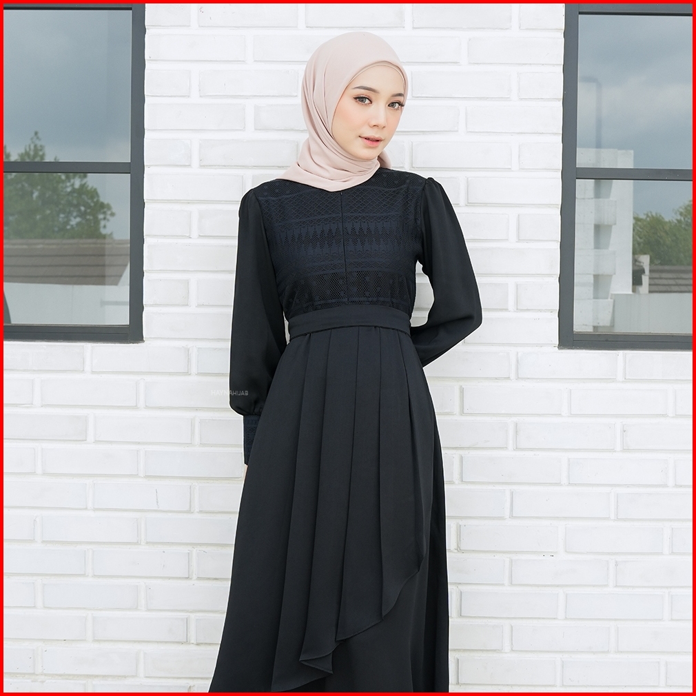 Hayna Alleia Dress Black - Dress Kondangan Busui Friendly Gamis Wanita Muslim