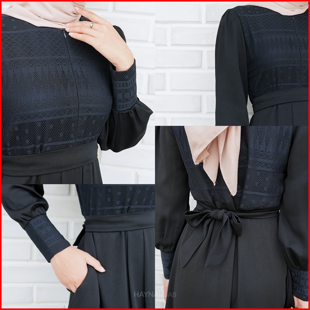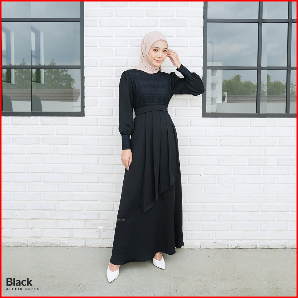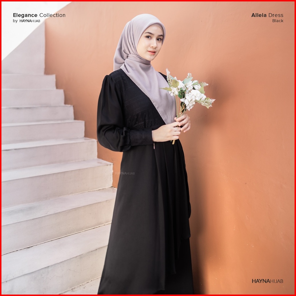 Hayna Alleia Dress Black - Dress Kondangan Busui Friendly Gamis Wanita Muslim