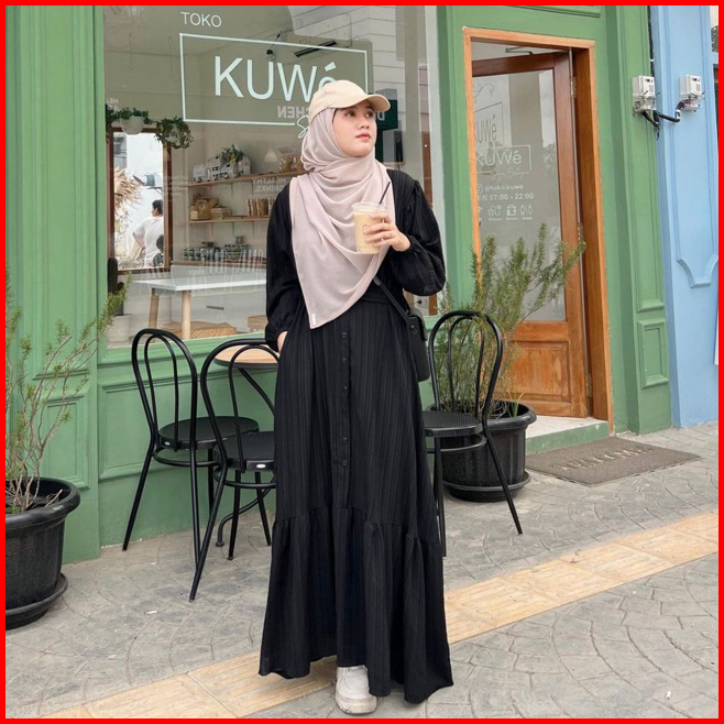 Kamila Dress By Sabrina - Gamis Bahan Lady Crush Berserat Halus Tali Lepas Pasang Size M Xl
