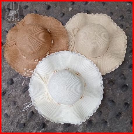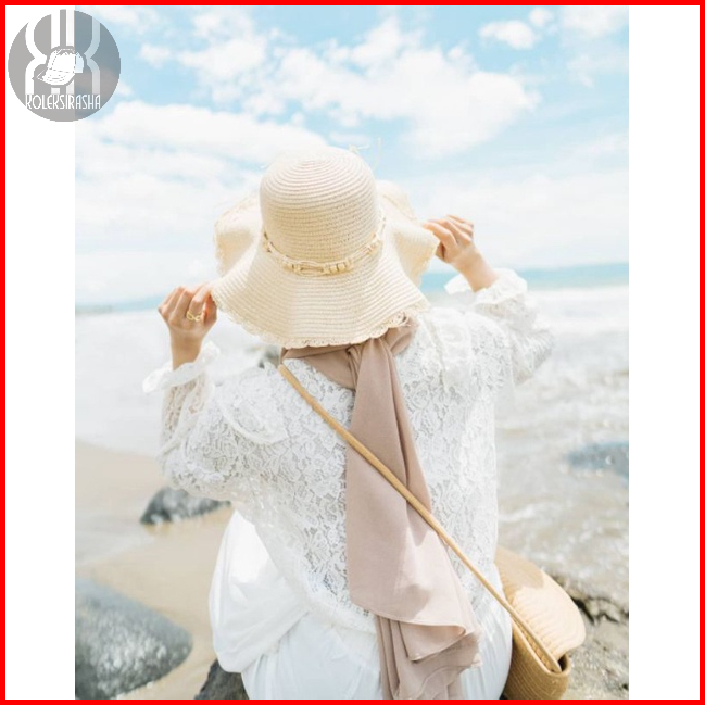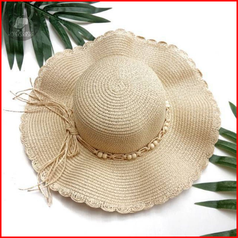 Topi Pantai Gelombang Import Manik Kayu Tali Kecil Topi Fashion Wanita