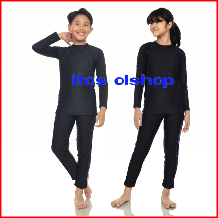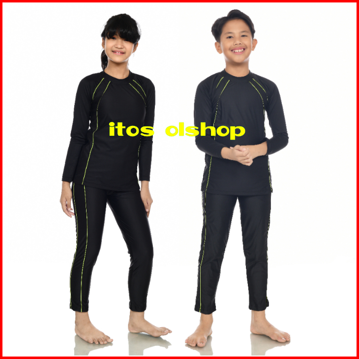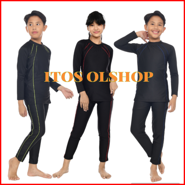 Baju Renang Setelan Anak Laki Laki Perempuan Panjang Polos 9-12 Tahun