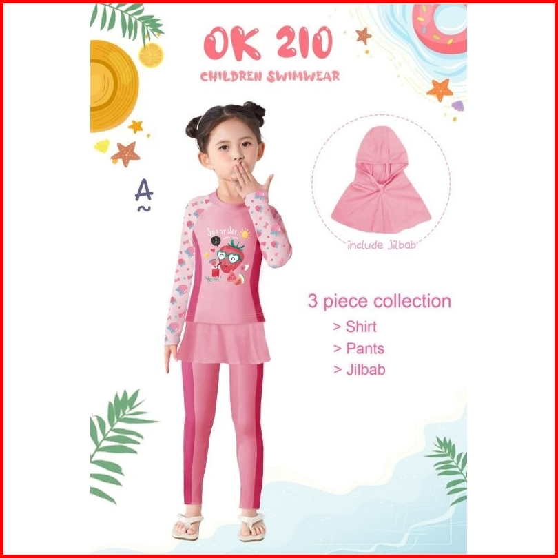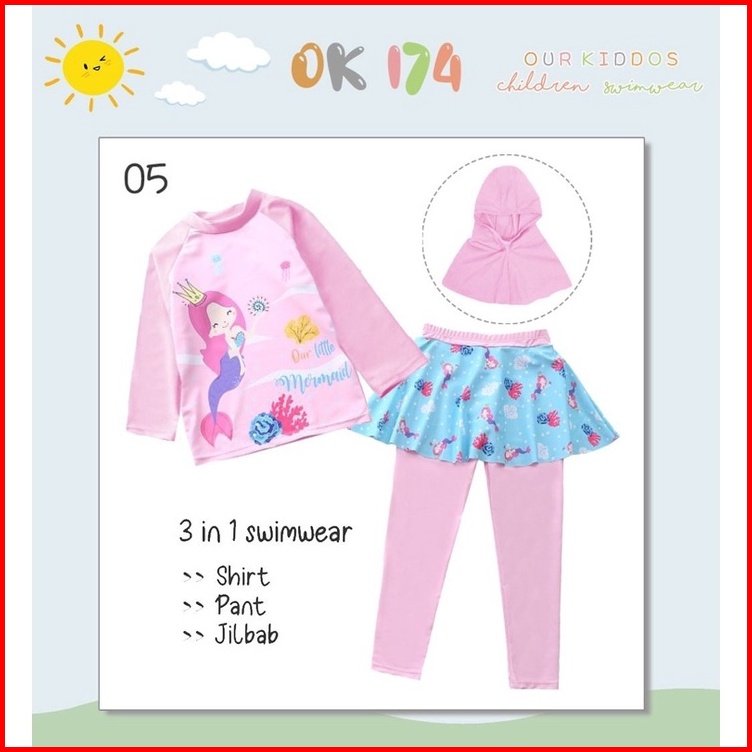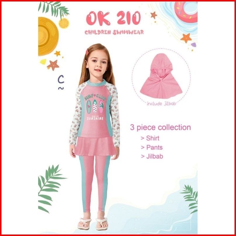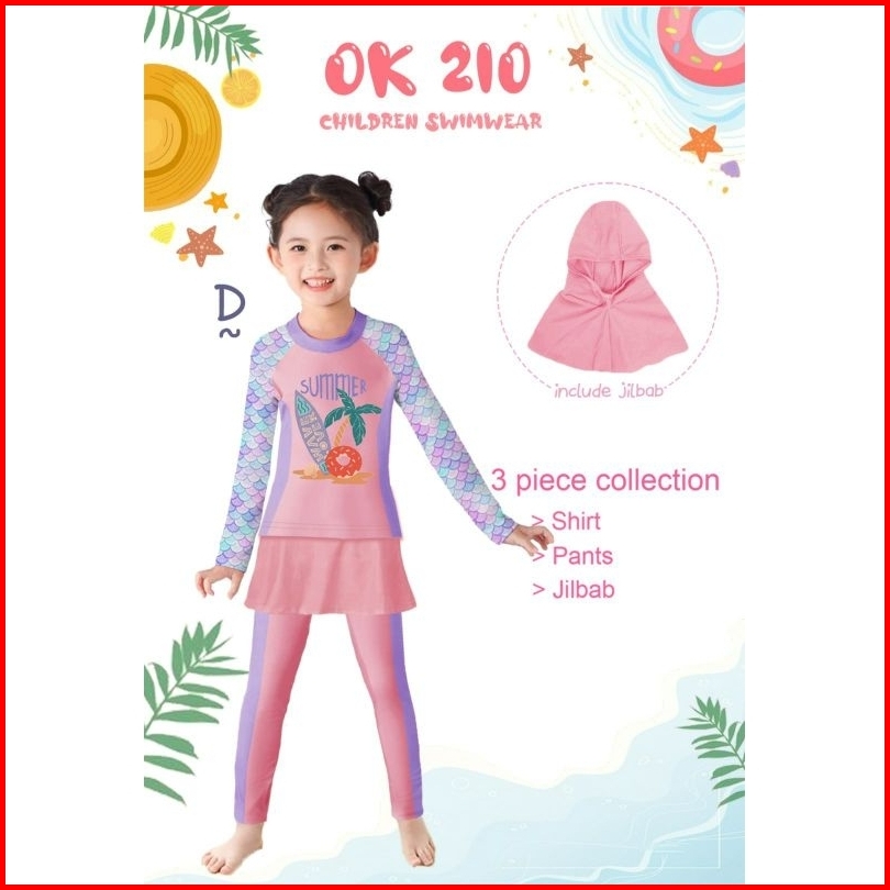 Baju Renang Anak Hijab Kids Swimsuit Ok174 Ok194 Kids Muslim Panjang Jilbab Girl Perempuan Cewek Muslimah Kerudung 2 3 4