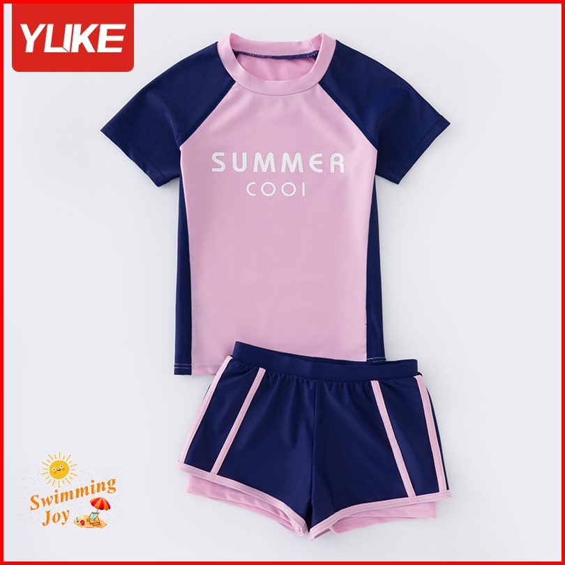 Swimming Joy - Baju Renang Anak Perempuan Hingga Remaja Two Piece Baju 2-in-1 Shorts Toddler Big Girl Swimsuit