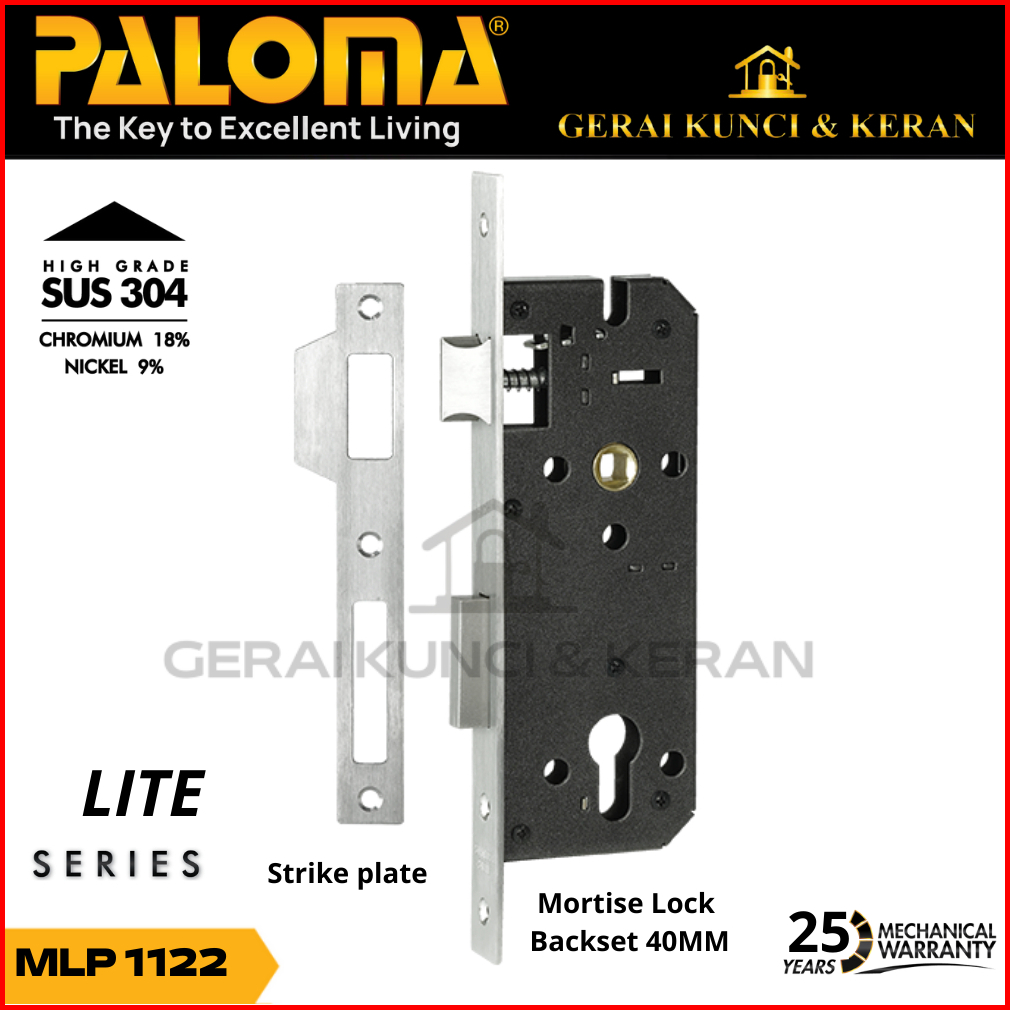 Body Kunci Mortise Lock Paloma Mlp 1122 Lite Series Swing Stainless Steel Backset 40mm Sss Sus 304