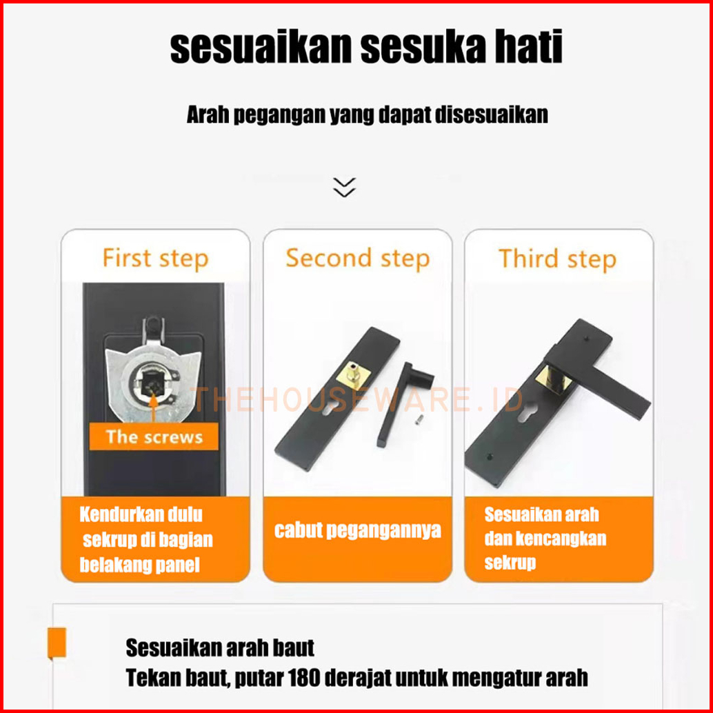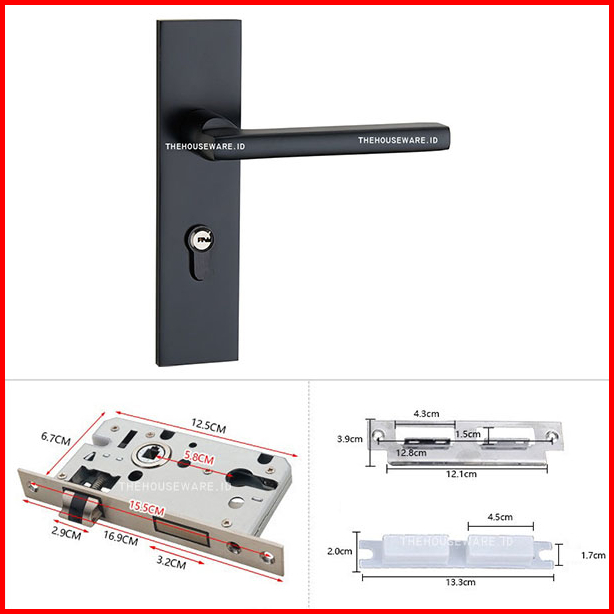 Handle Kunci Pintu Rumah Set Ukuran Medium Tanggung Black Hitam Minimalis