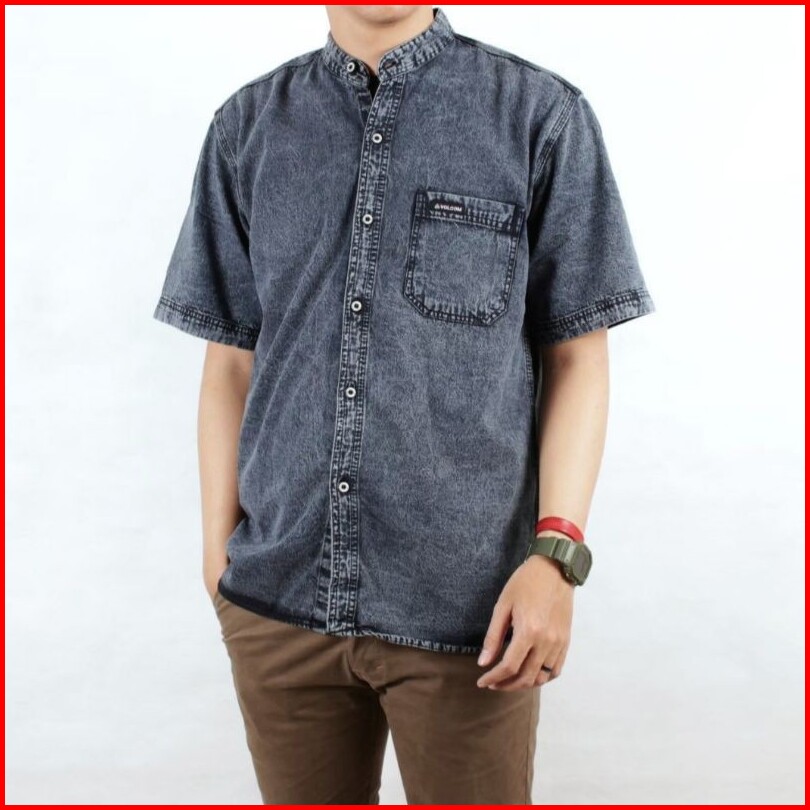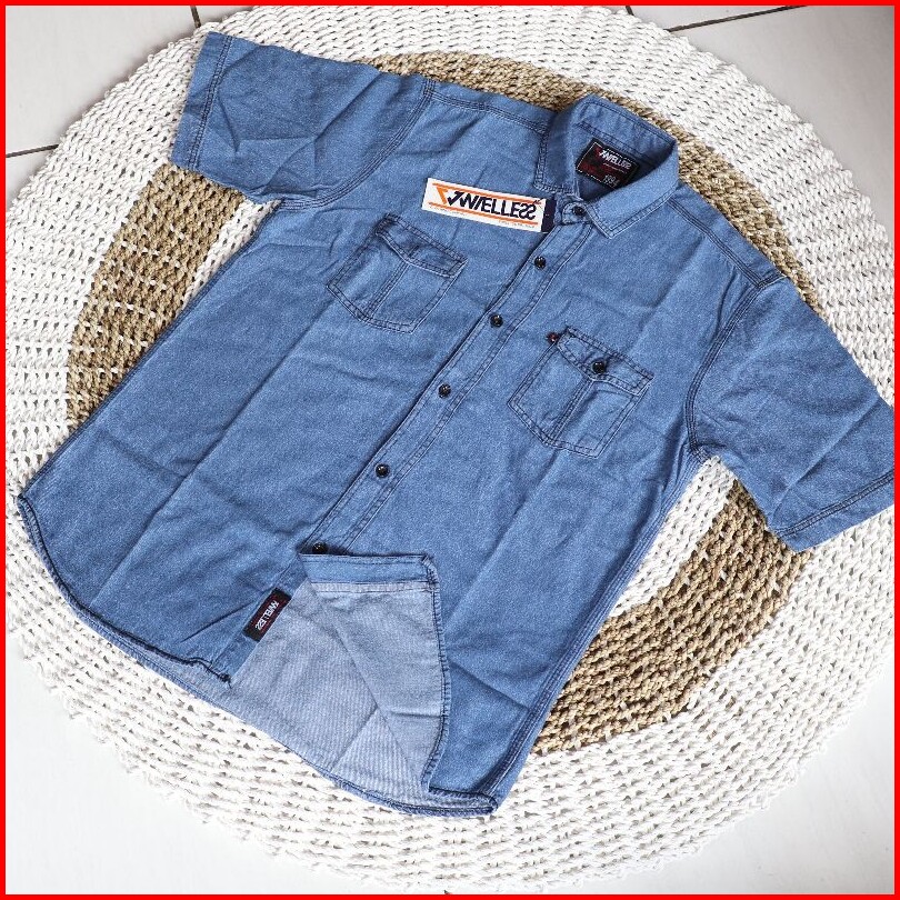 Kemeja Jeans Denim Lengan Pendek Pria Terpopuler