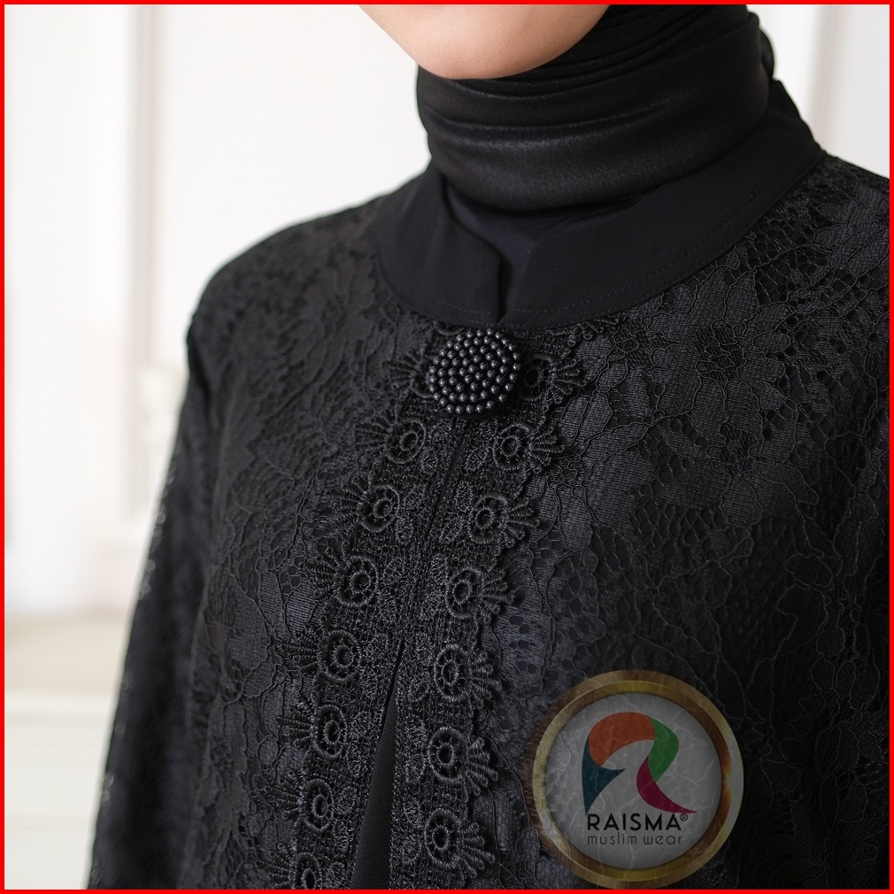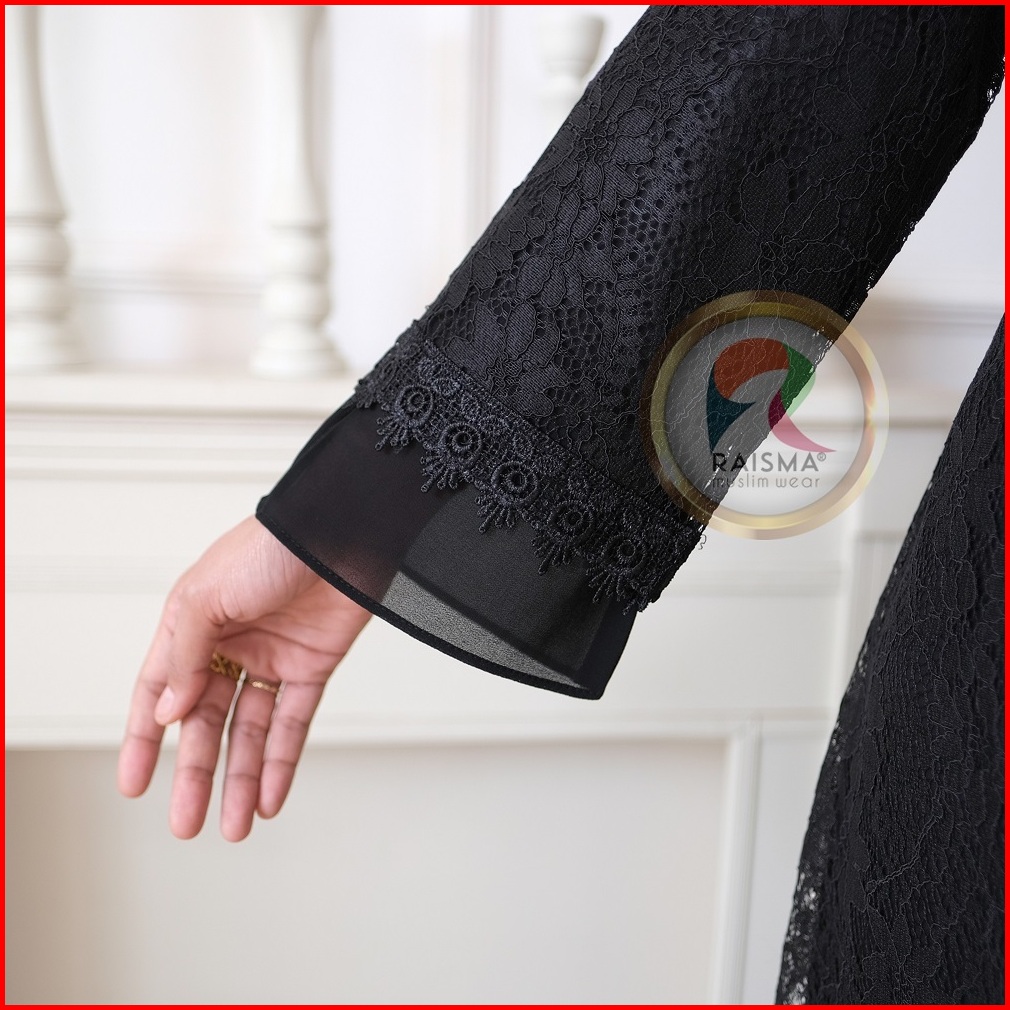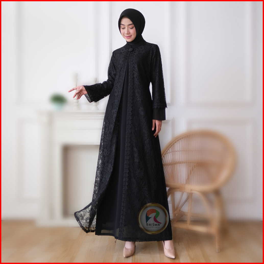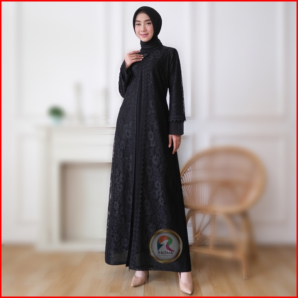 Raisma - Ricca Gamis Hitam Wanita Motif Full Brokat Dress Wanita Muslim Terbaru