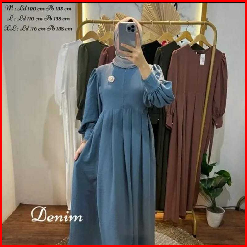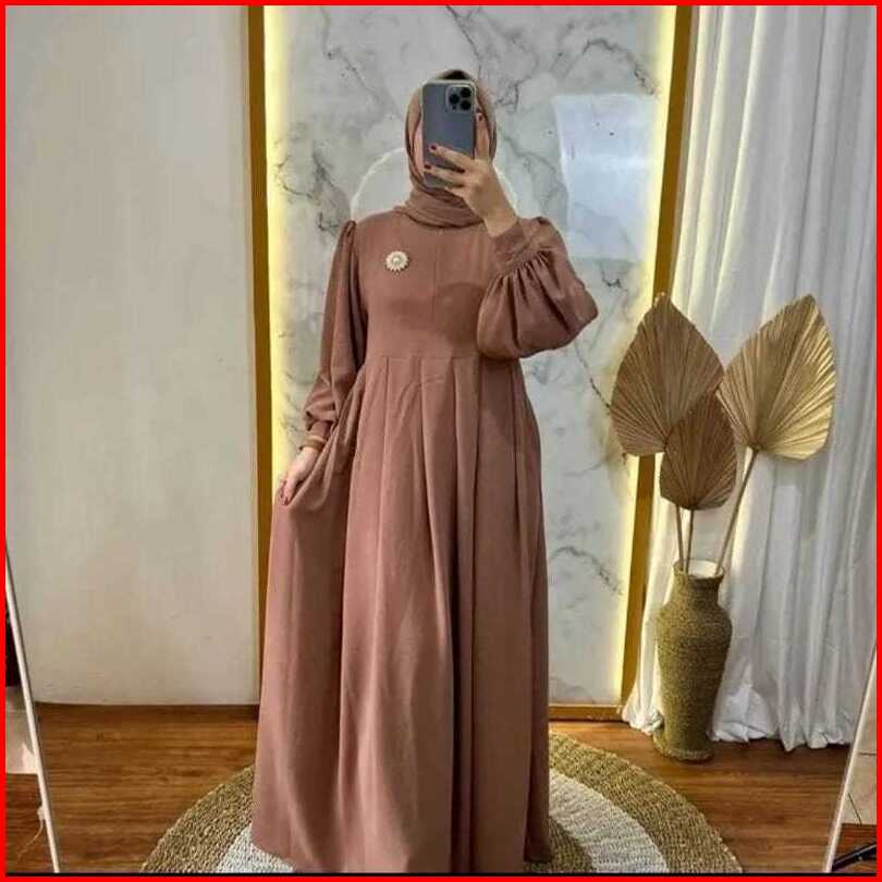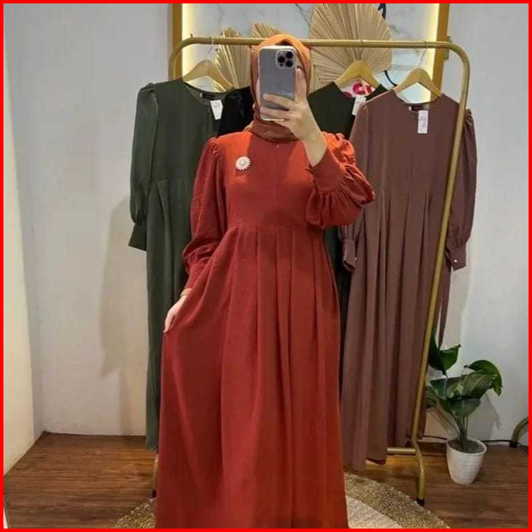 Zaskiagamis Bahan Cringkle Airflow Gamis Formal Muslim Dengan Variasi Bross Di Bagian Samping Kiri