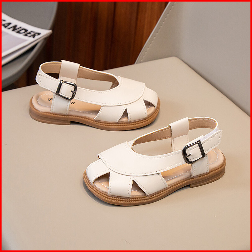 Sandal Bertali Kulit Anak Perempuan Besar Anti Tabrakan Sepatu Anak Nyaman Sol Lembut Ukuran 26 36