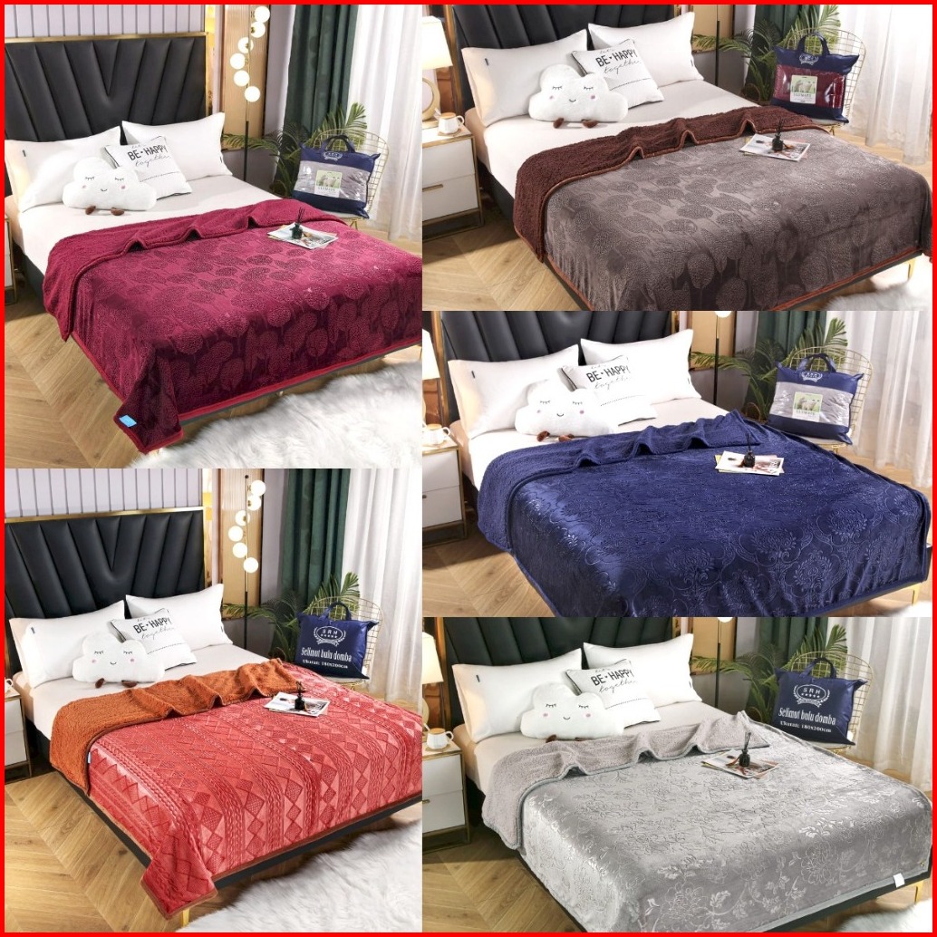 Selimut Bulu Domba Waffle Halus Dua Sisi Emboss Aesthetic Terlaris Uk 180x200 Premium Quality Free Tas