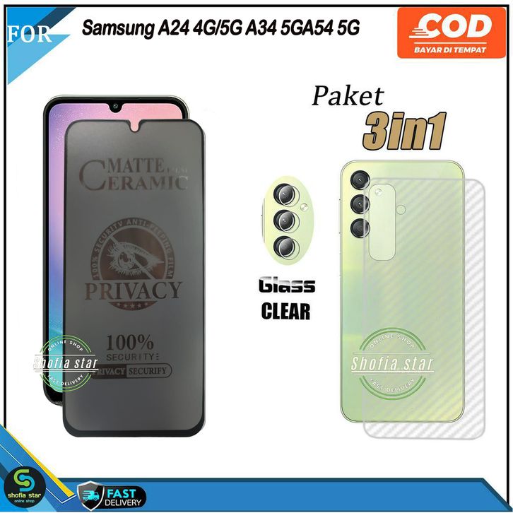 Paket 3in1 Tempered Glass Ceramic Privacy Samsung A24 4G A34 5G A54 5G M14 5G A14 4G/5G A05s A15 4G 5G A25 5G A35 5G A55