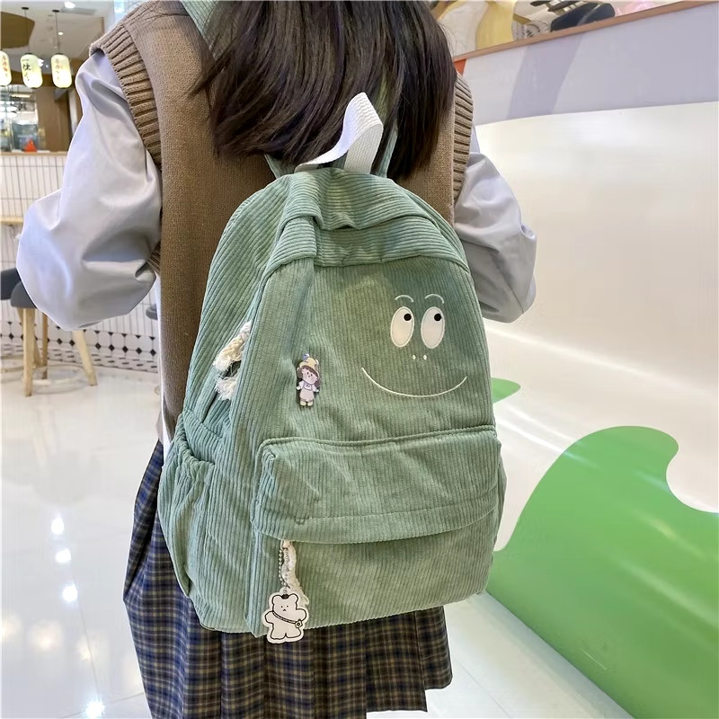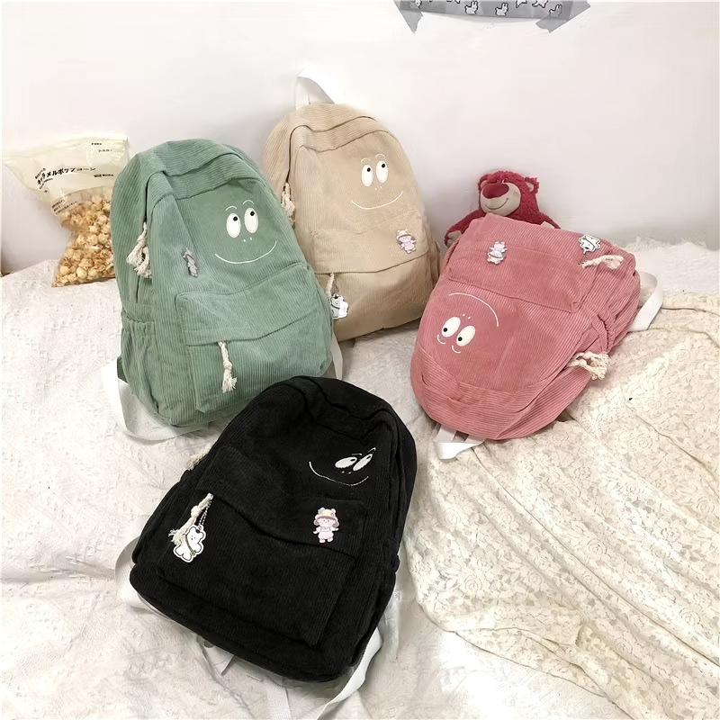 Tas Ransel Corduroy Muka Senyum Tas Sekolah Cewe Korean Style Trend Tas Casual