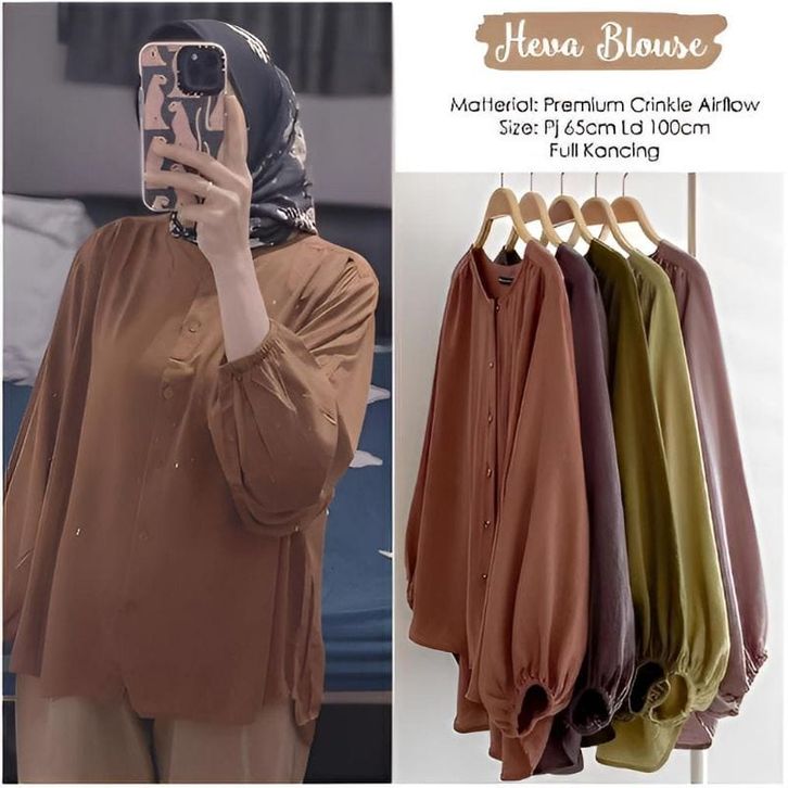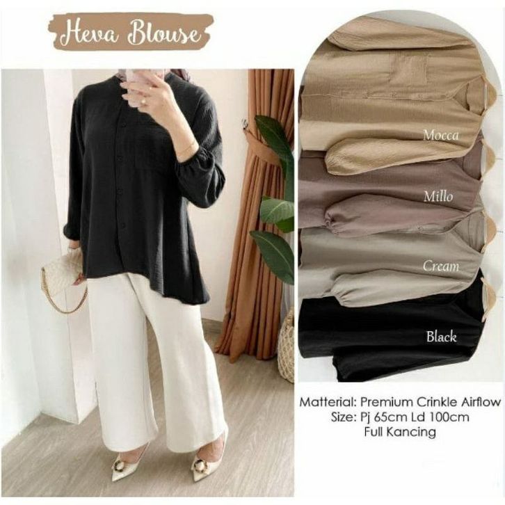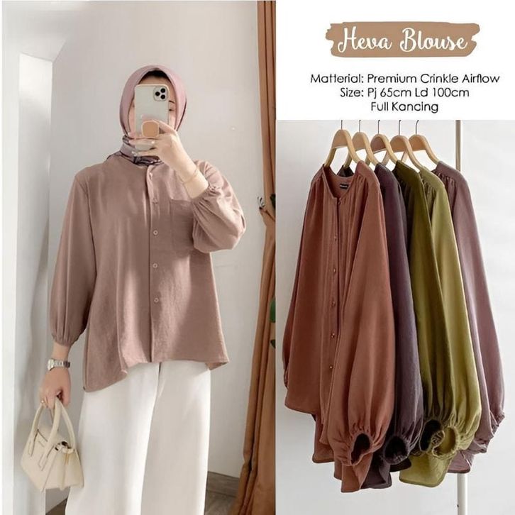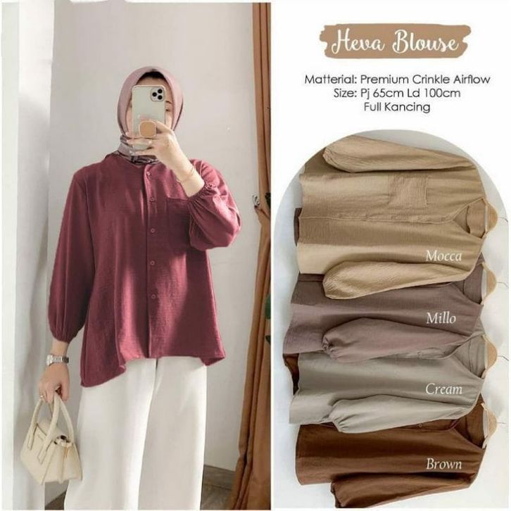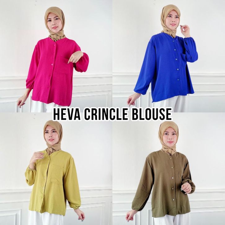 Kemeja Wanita Atasan Blouse Perempuan Baju Kerja Kasual Lengan Panjang Saku Depan Bahan Crincle Premium Stylish