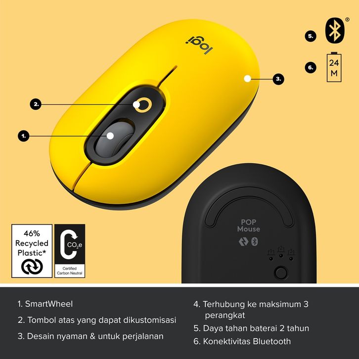 MOUSE WIRELESS BLUETOOTH SILENT EMOJI LOGITECH POP ORIGINAL