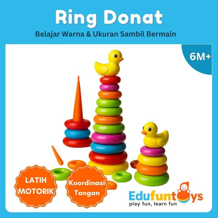 [EDUFUNTOYS] Mainan Donat Susun Jumbo 10 Ring Plus Bebek | Mainan Edukasi Bayi Anak Koordinasi Warna