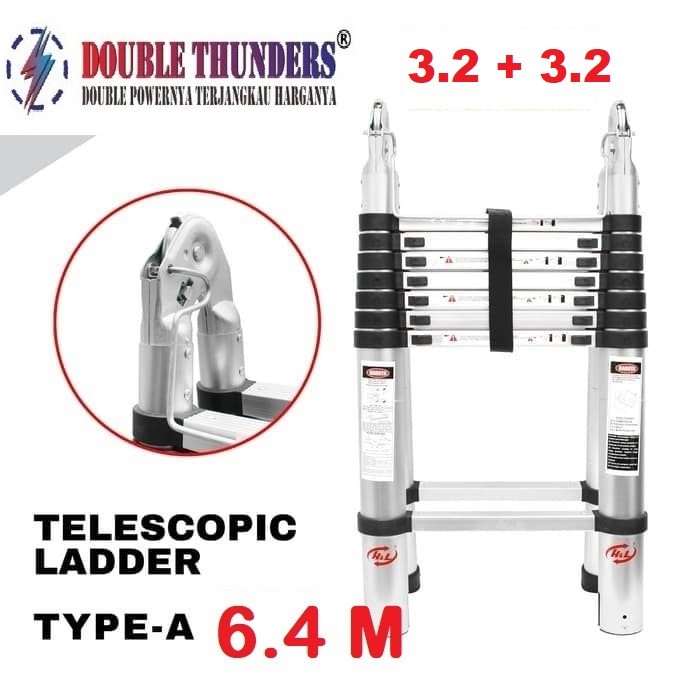 Tangga Teleskopik Double 6.4M / 6 Meter Type A Tangga Lipat Aluminium
