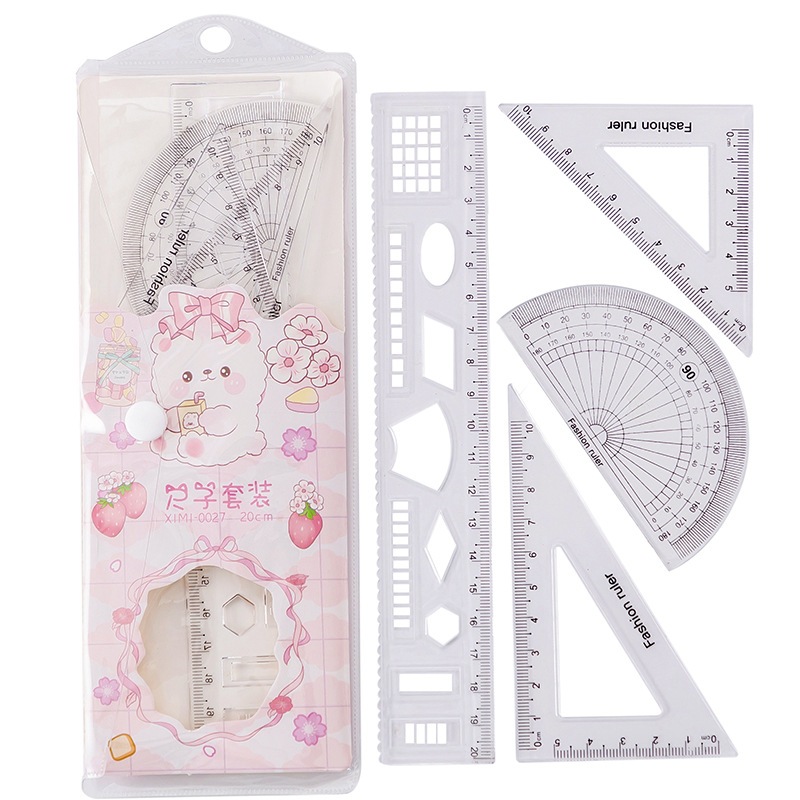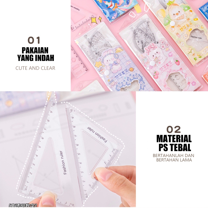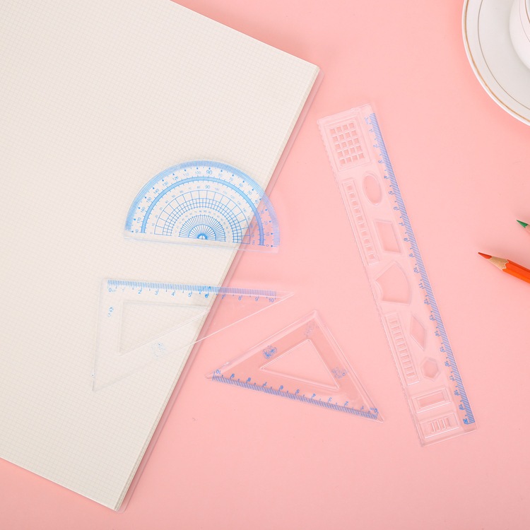 HM38 1Set Isi 4 Penggaris Set isi 4 Model Penggaris Plastik Model Garisan Set Ruler Set