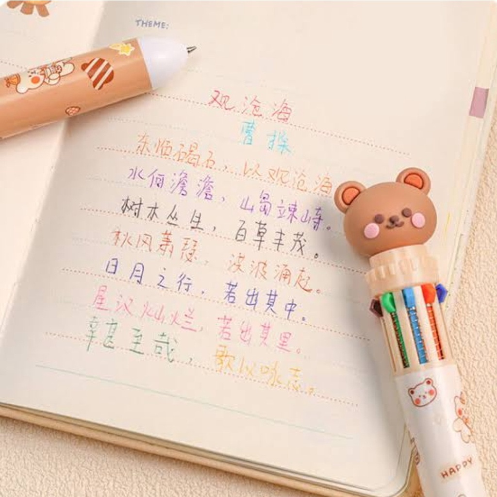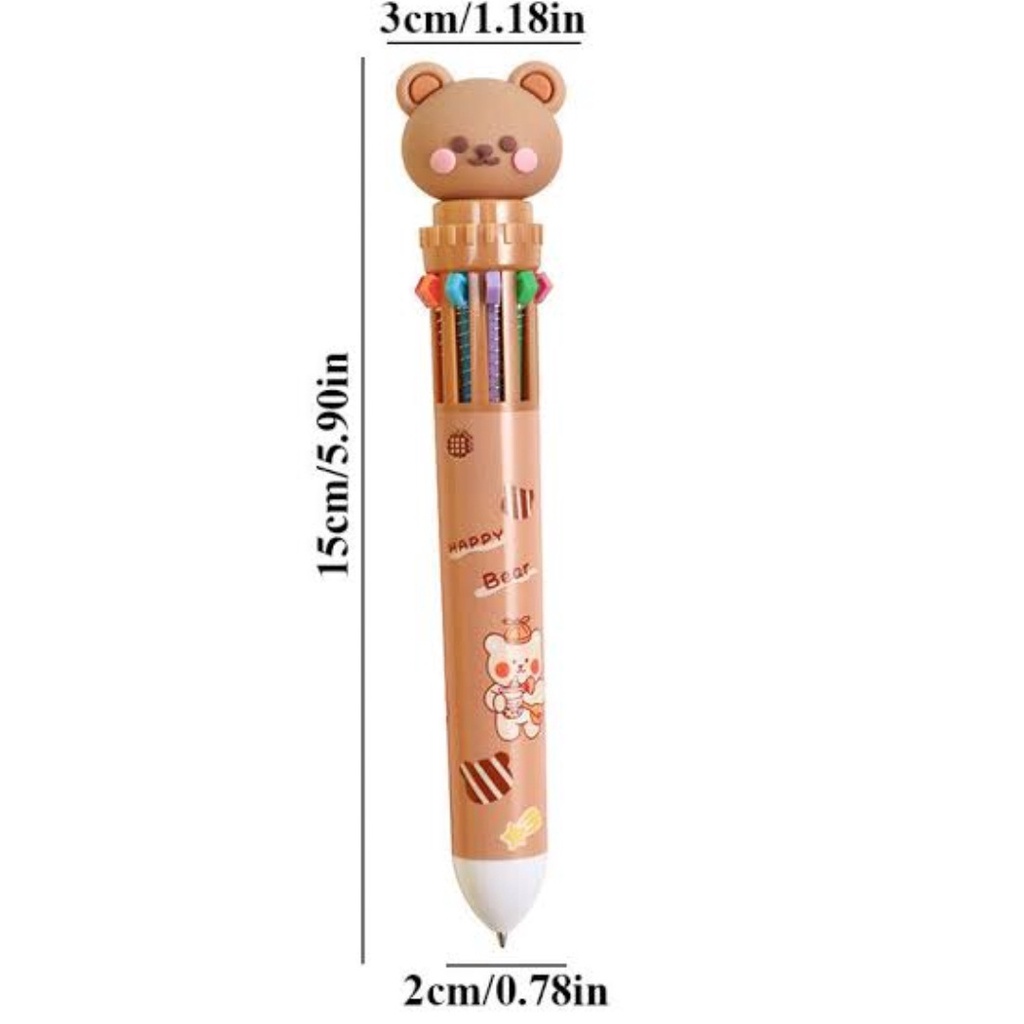 Pulpen 10 Warna Pena Motih Beruang Pulpen Karakter Teddy Bear