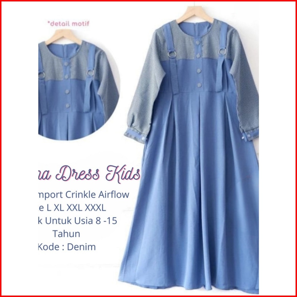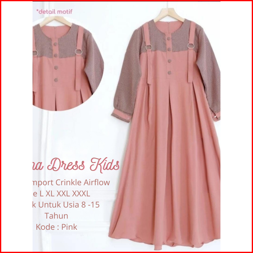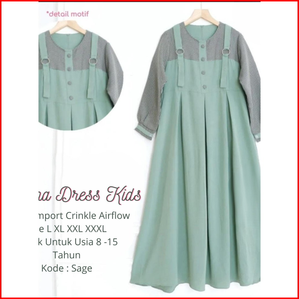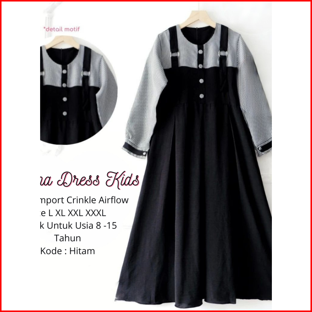 Selenav.2 Dress Gamis Anak Tanggung Usia 7-14 Thn - Cringkle Airflow Mix Katun Kotak Hitam