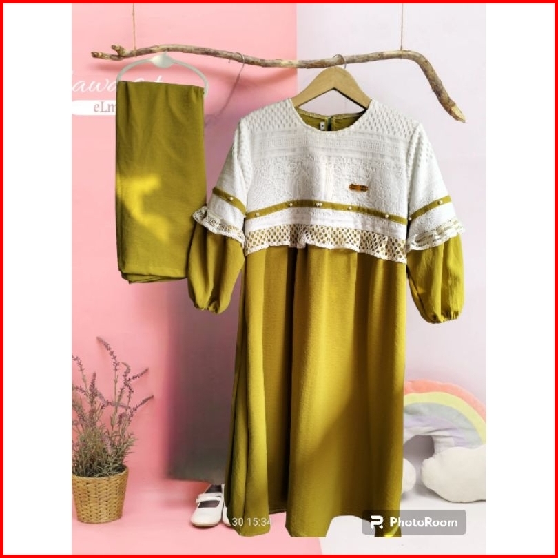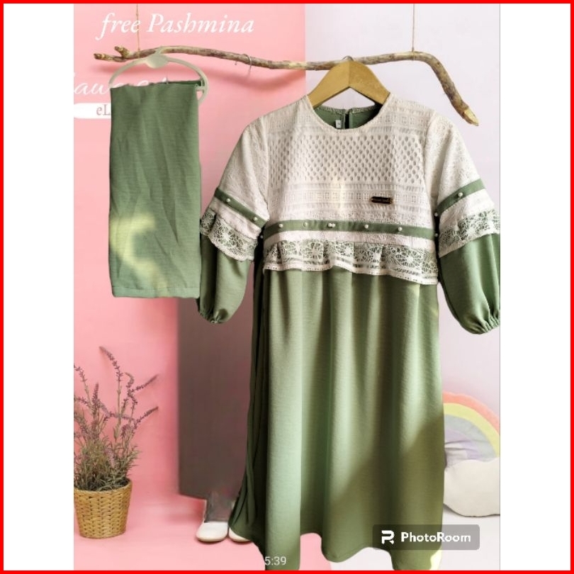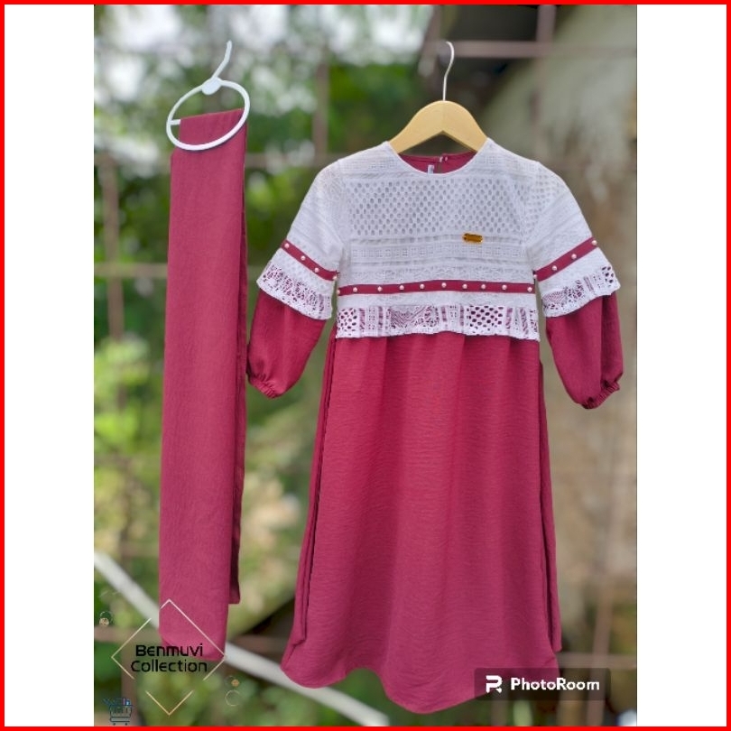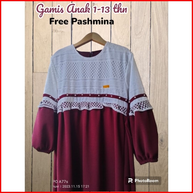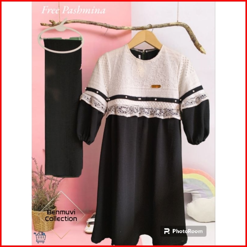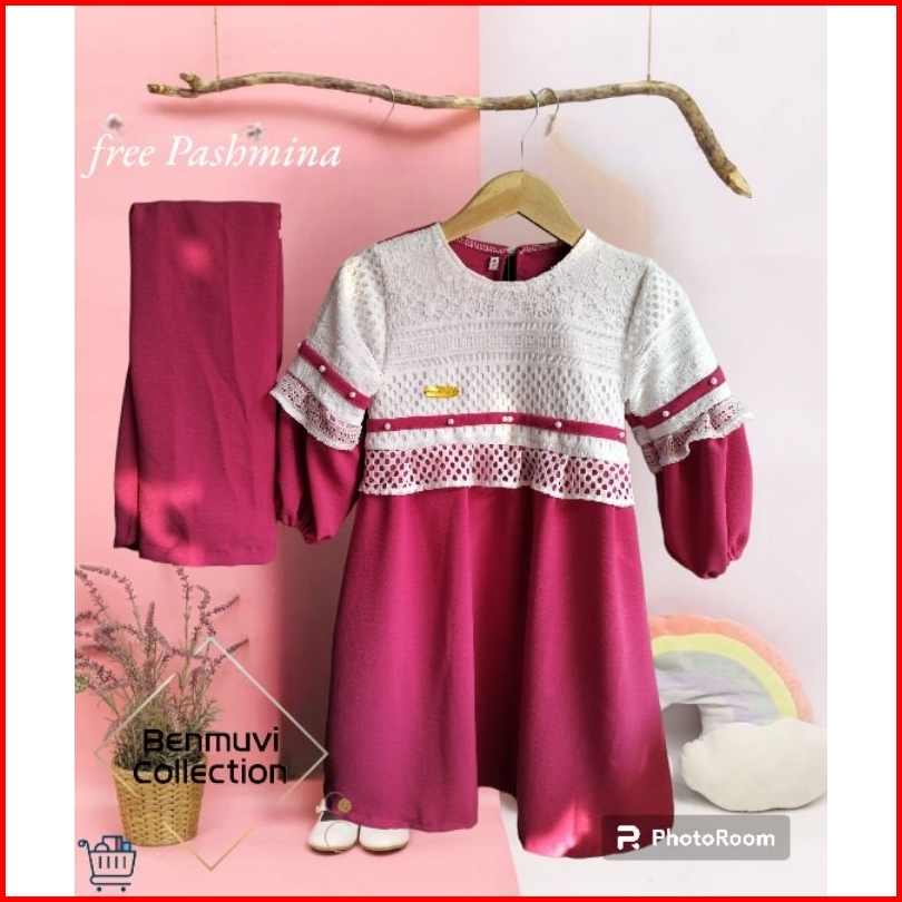 Dress Crinkle Mix Brukat Free Pashmina Gamis Anak 1-13thn Terbaru