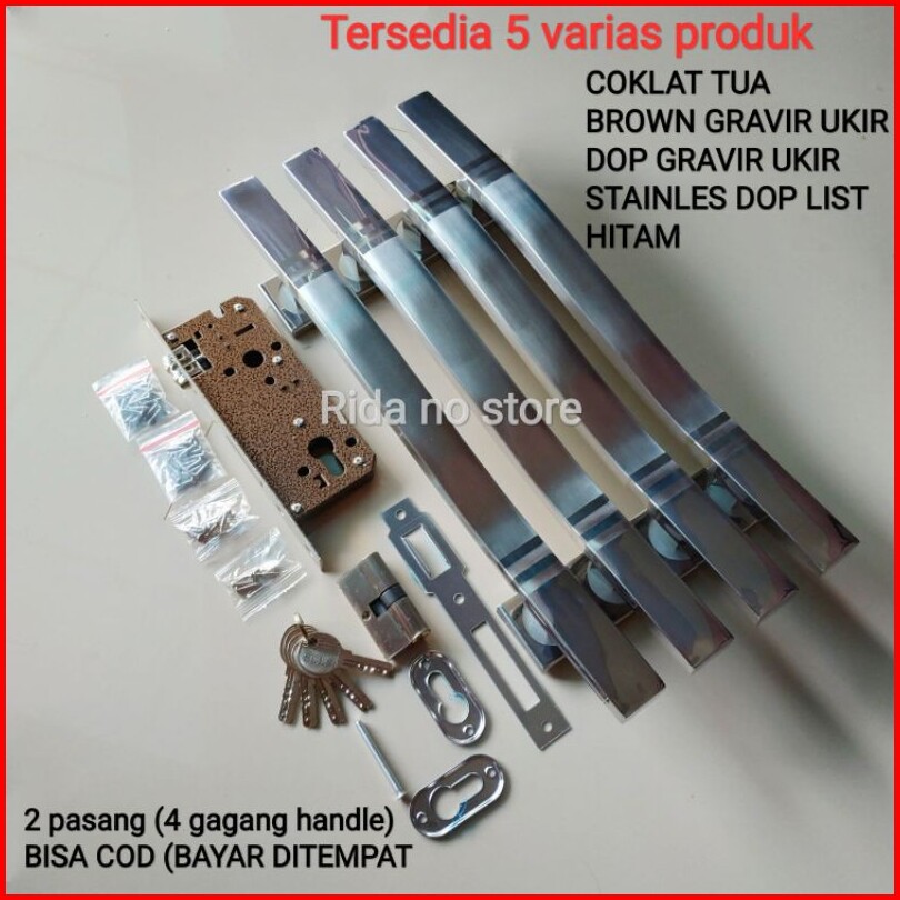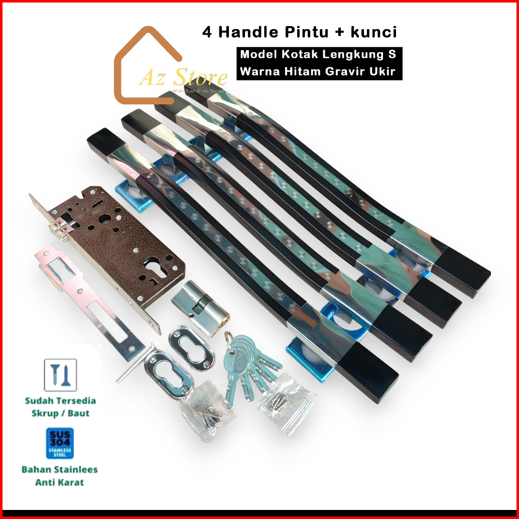 Handle Pintu Rumah Set Body Kunci 4 Gagang Pintu Minimalis 45 Cm 33 Cm Bahan Stainles Asli