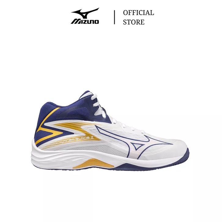 SEPATU VOLLEY MIZUNO THUNDER BLADE Z MID WHITE BLUE RIBBON MP GOLD MIZV1GA237543