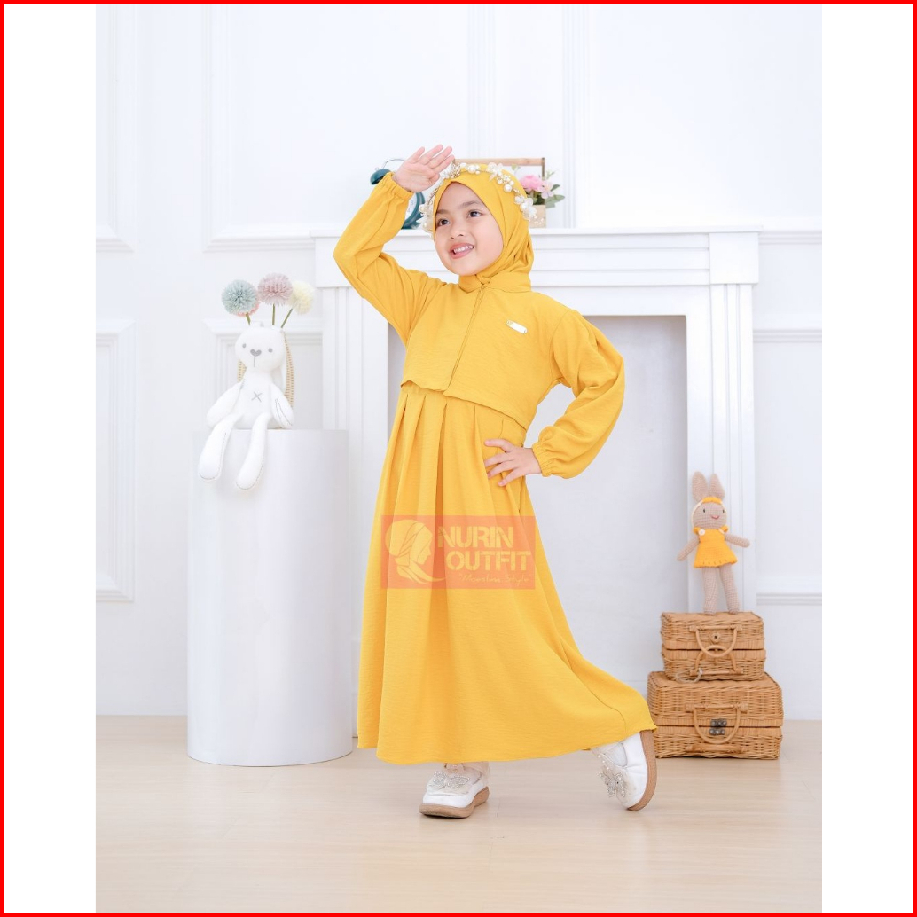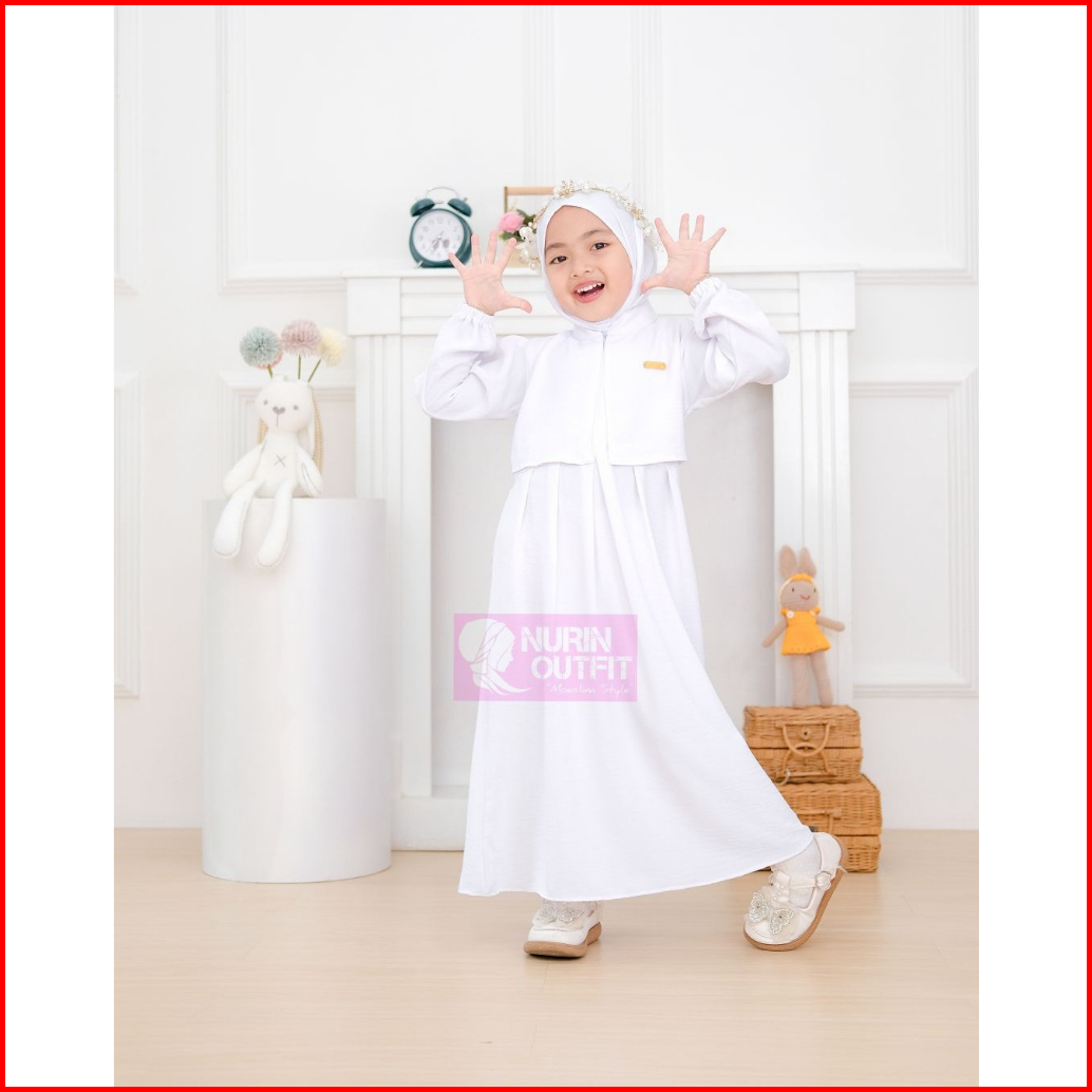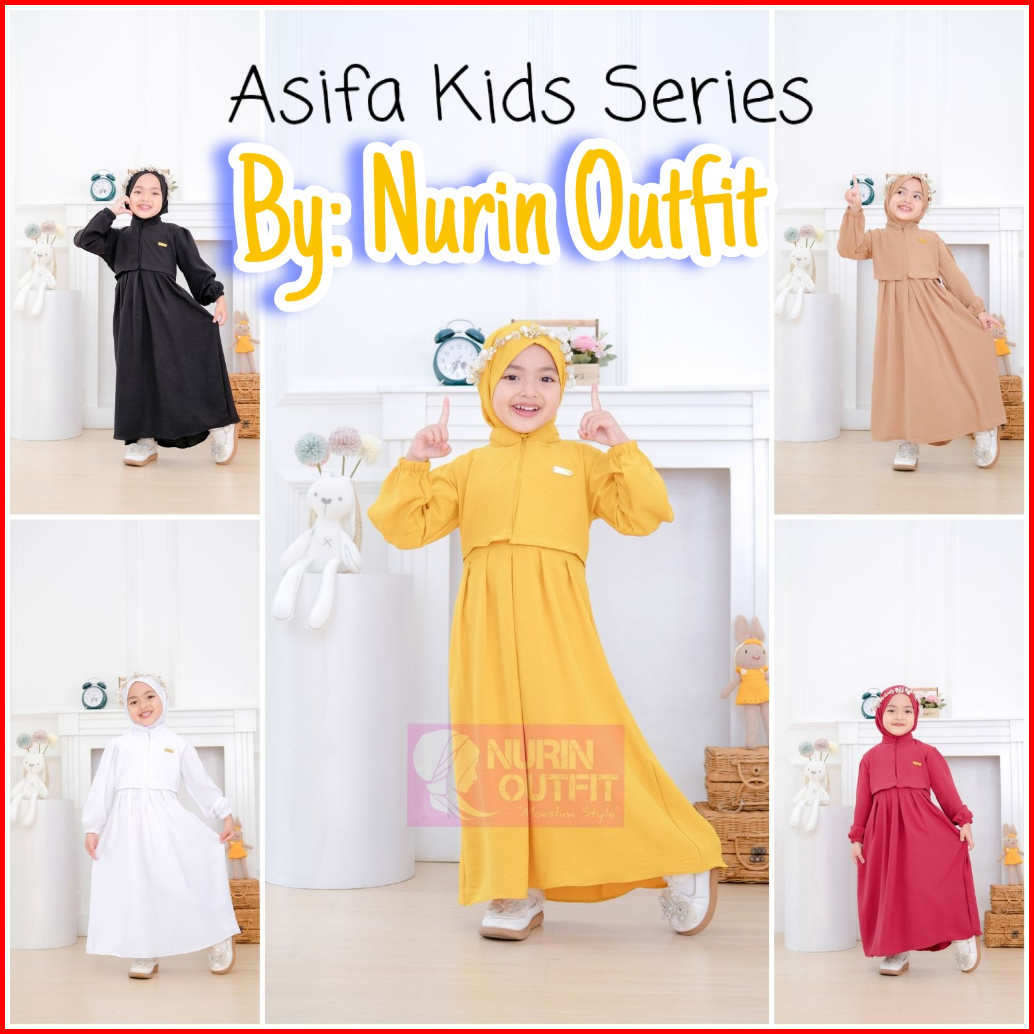 Gamis Anak Set Hijab Crinkle Airflow Premium Asifa Kids Usia 3 - 13 Tahun Bisa Couple Ibu Dan Anak Gamis Anak Putih Gami