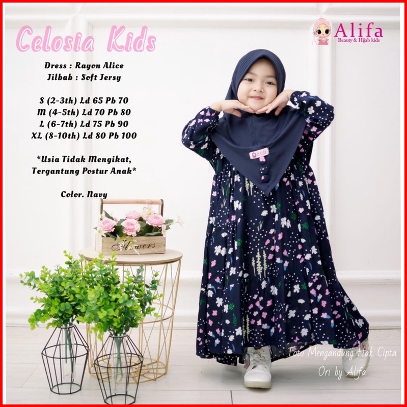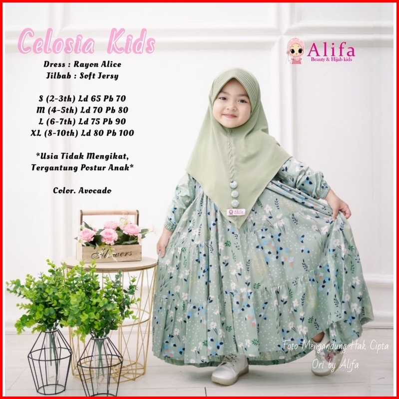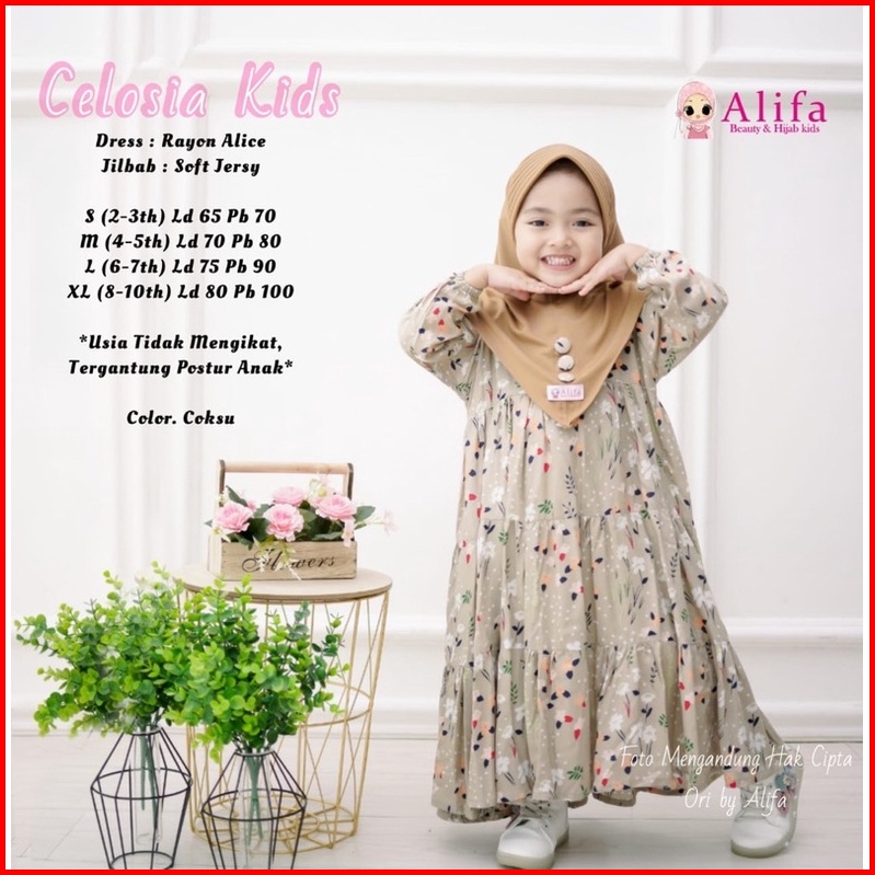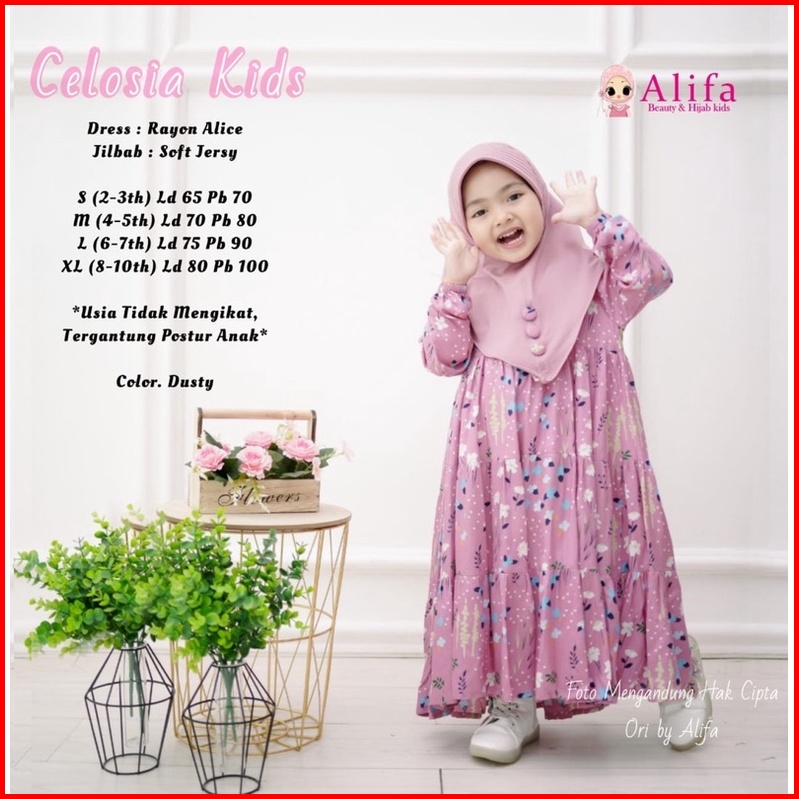 Gamis Anak Perempuan Free Hijab Usia 2 - 12 Tahun Celosia Kids By Alifa