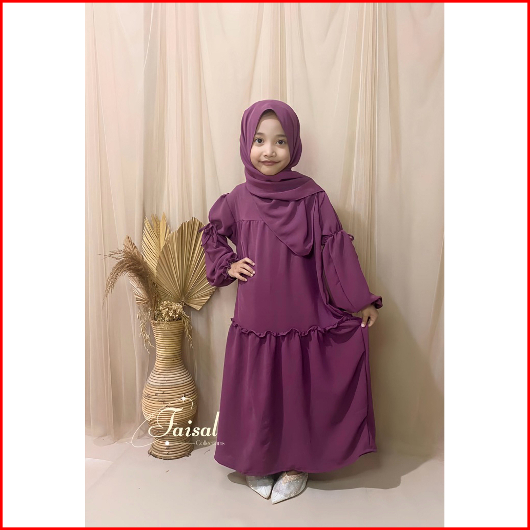 Gamis Dress Anak Perempuan Usia 3-12 Th Amina Dress Bahan Crinkle Airflow Premium Plus Hijab