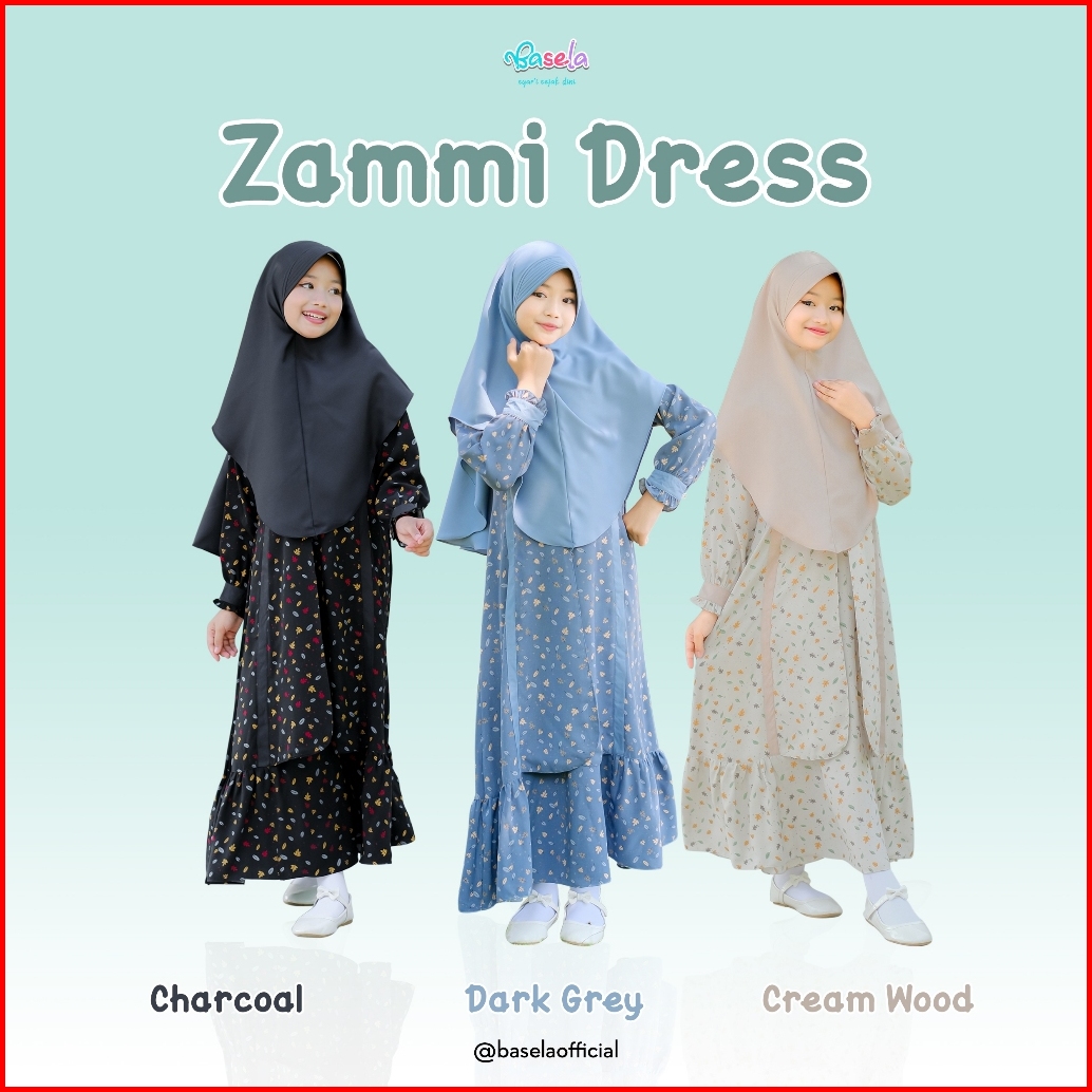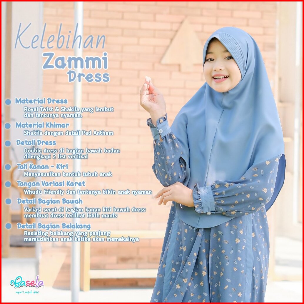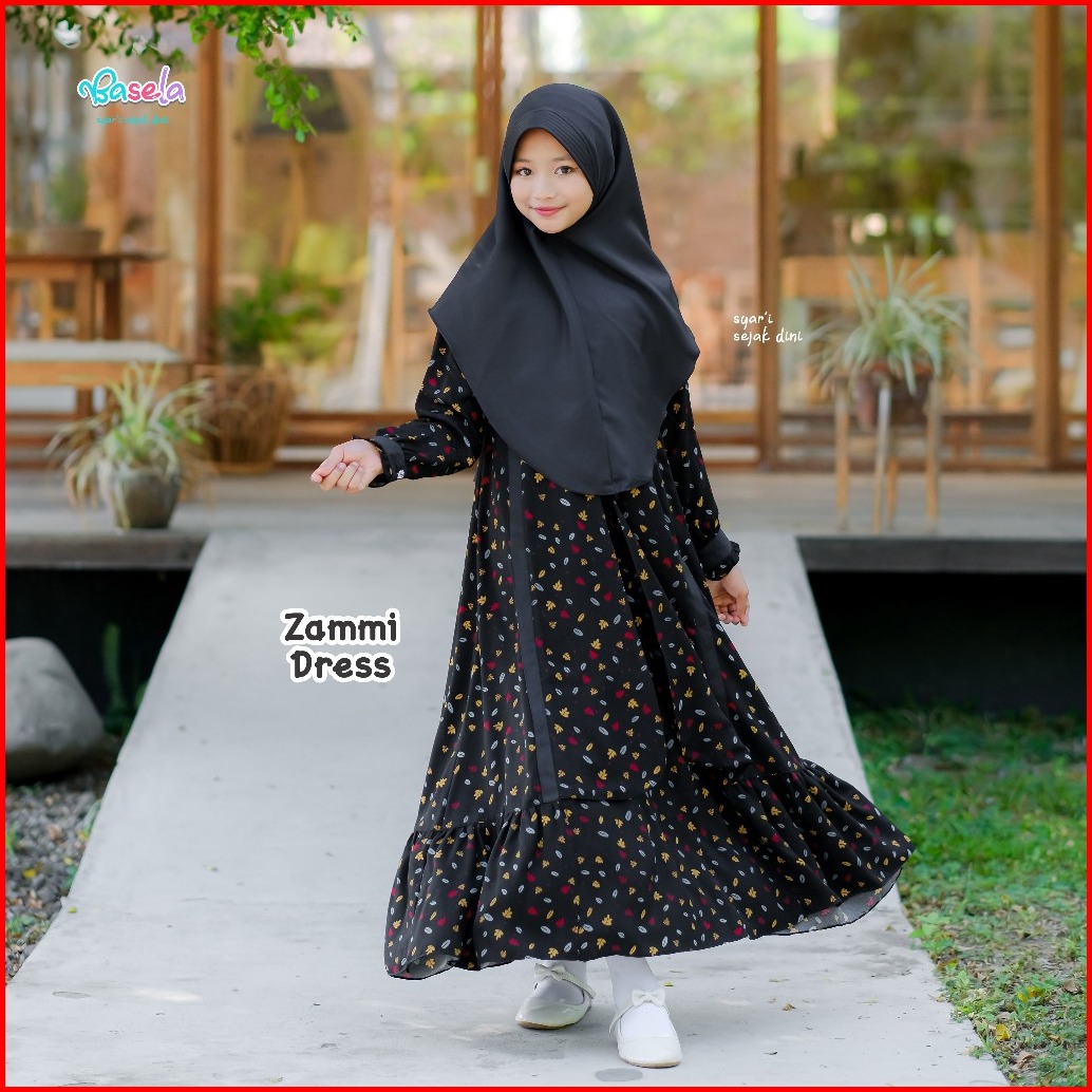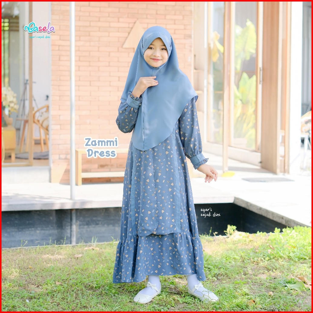 Zammi Dress By Basela Baju Gamis Anak Perempuan Syari Set Hijab Baju Muslim Anak Perempuan