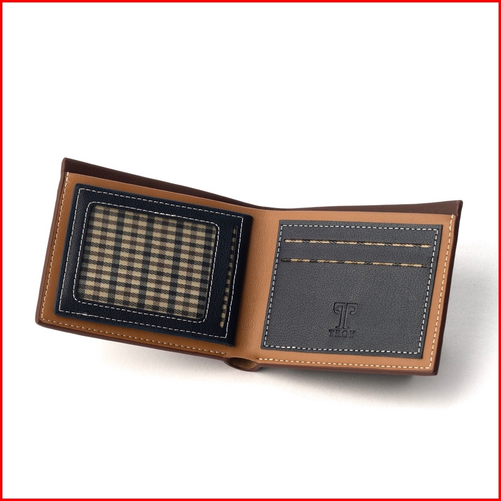 Troy Dompet Pria Lipat Bahan Kulit Pu Original Cowok Simple Minimalis Keren Elegan Coklat Pold