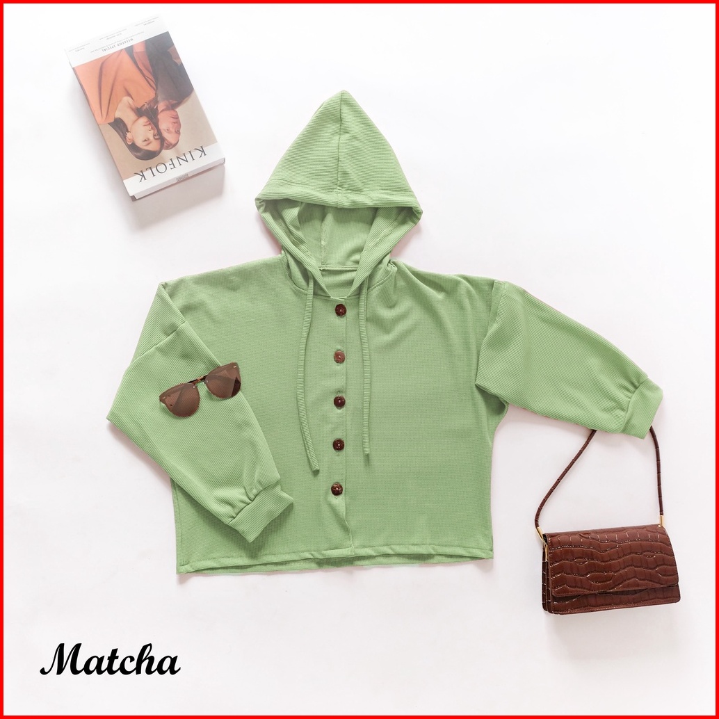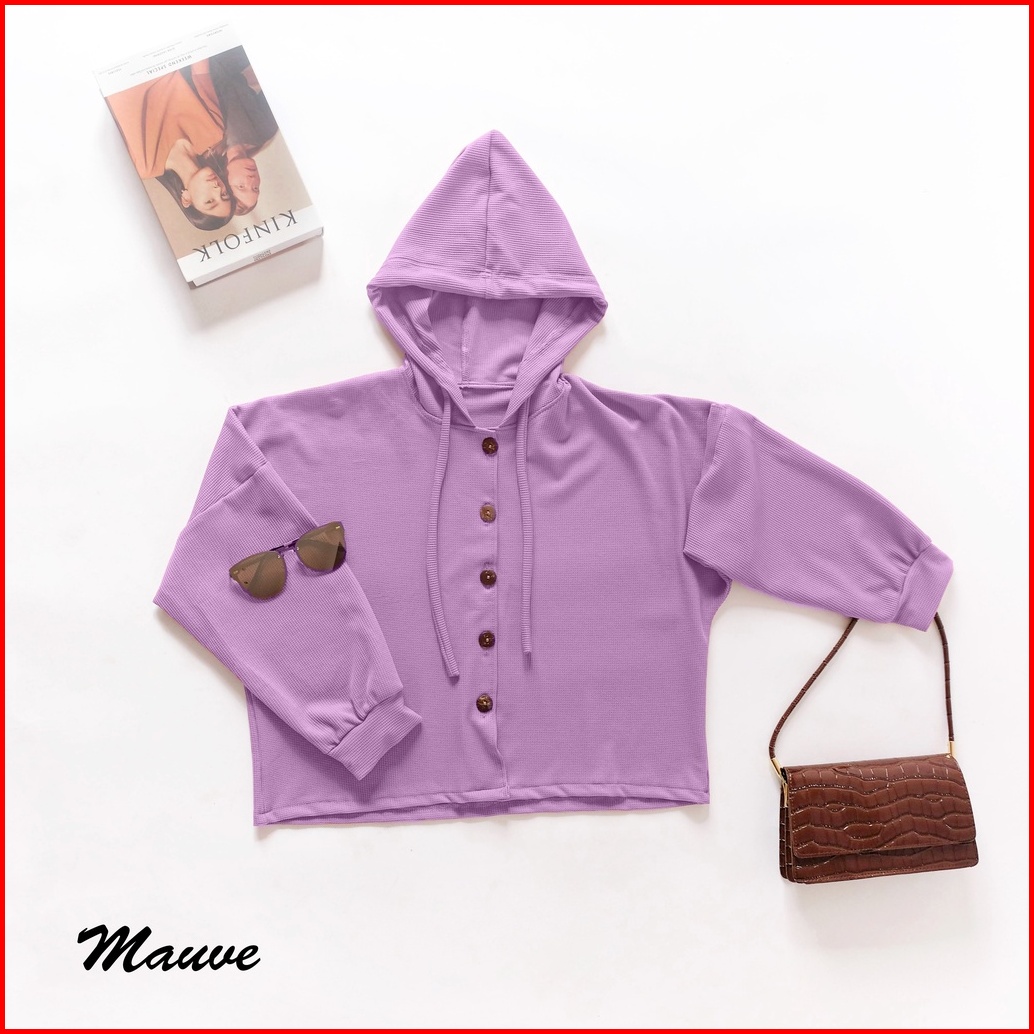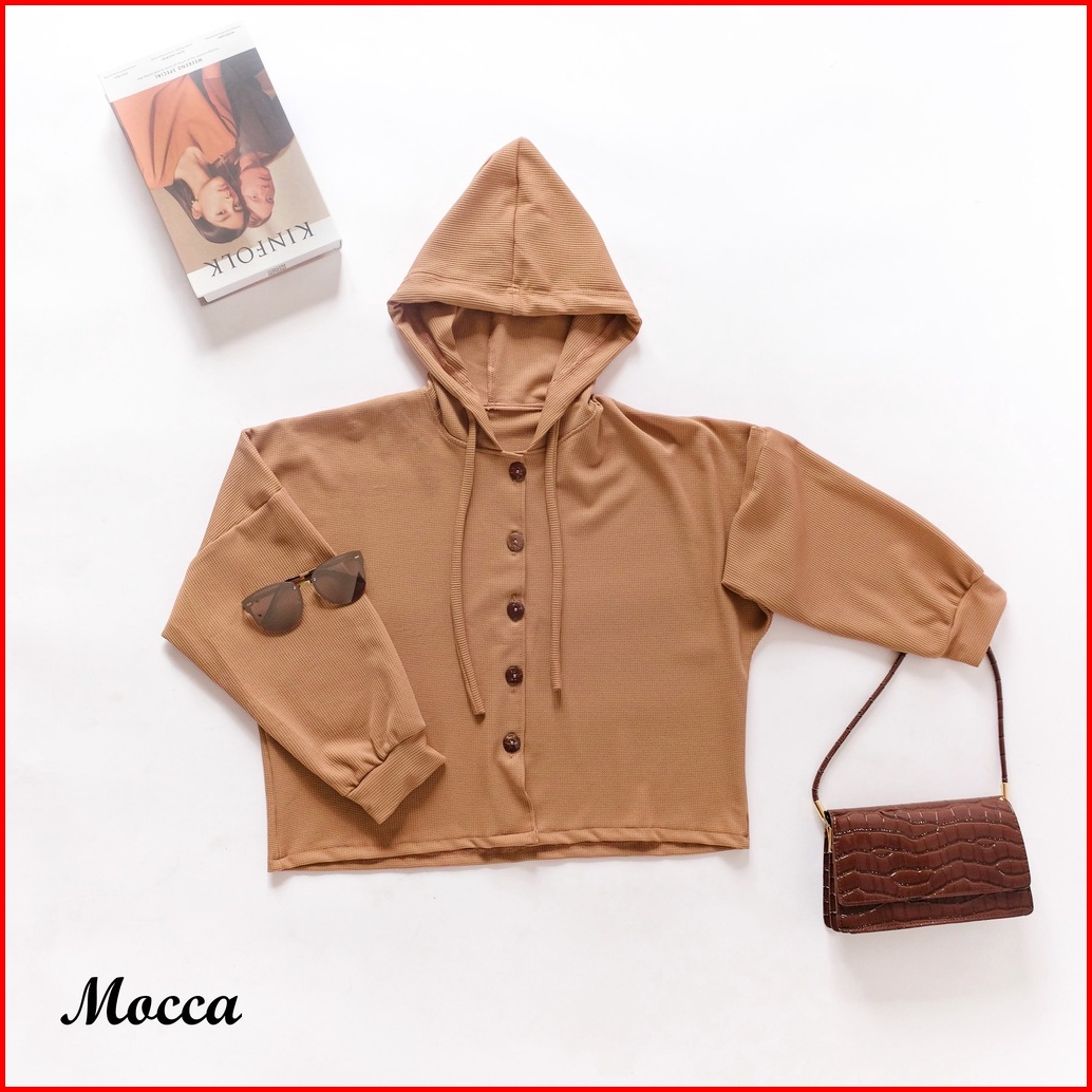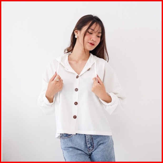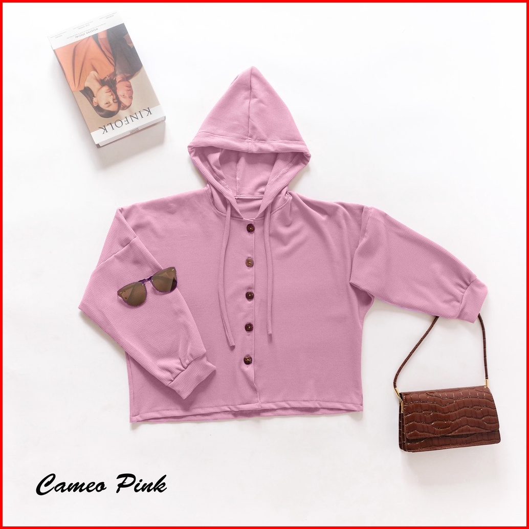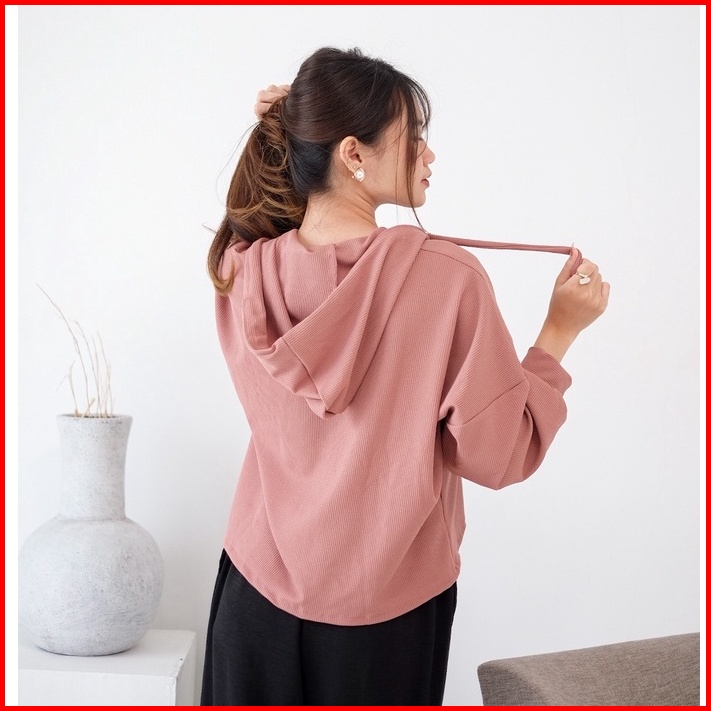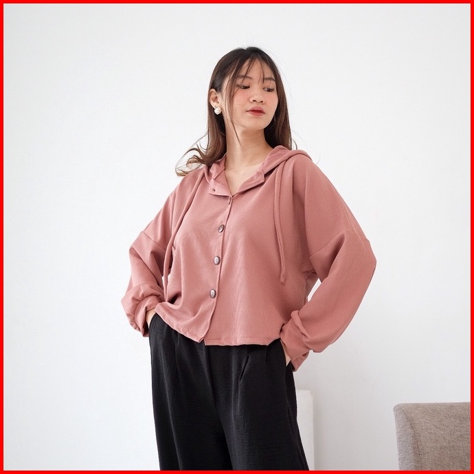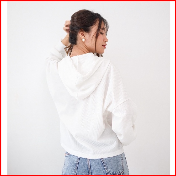 Alya Hoodie Crop Wanita Button Waffle Knit Hoodie Wanita Rajut