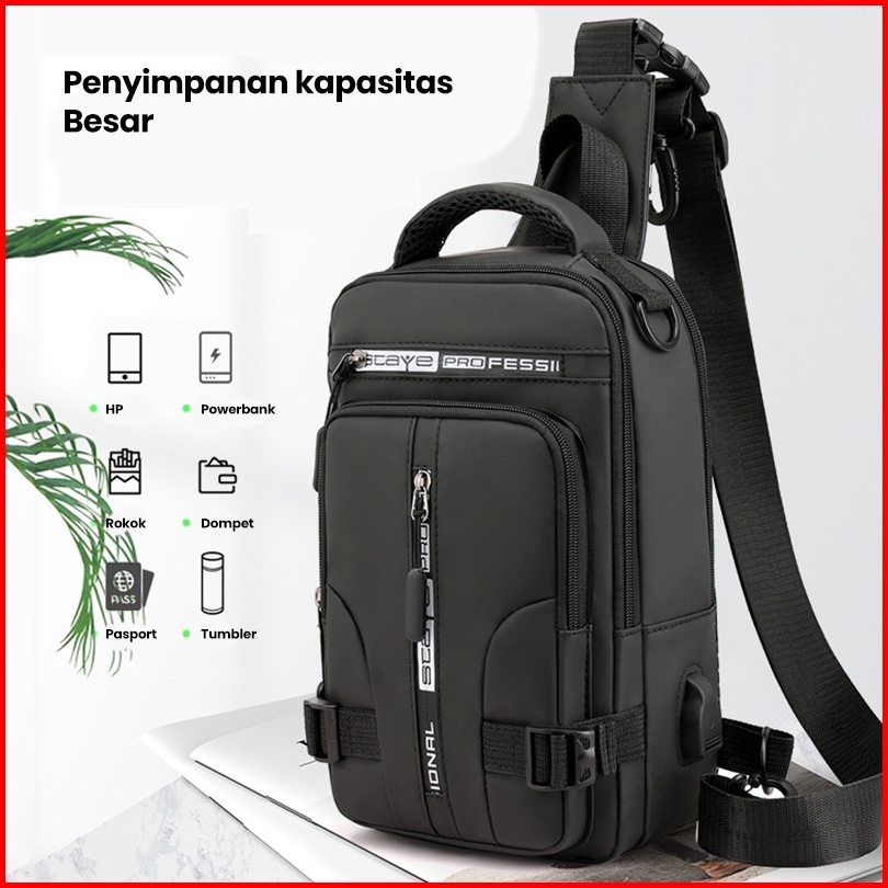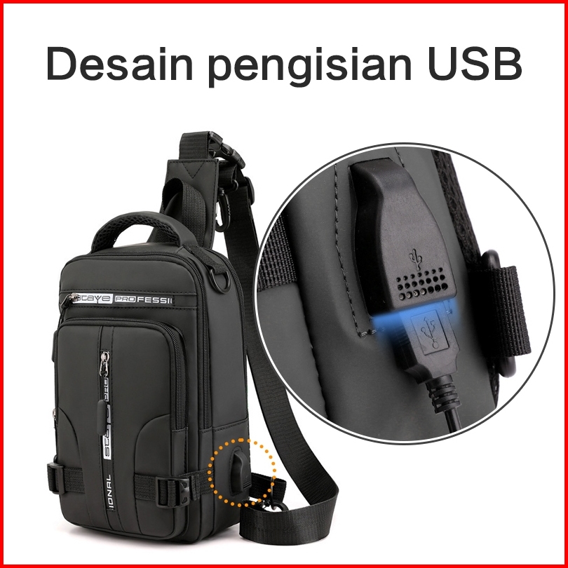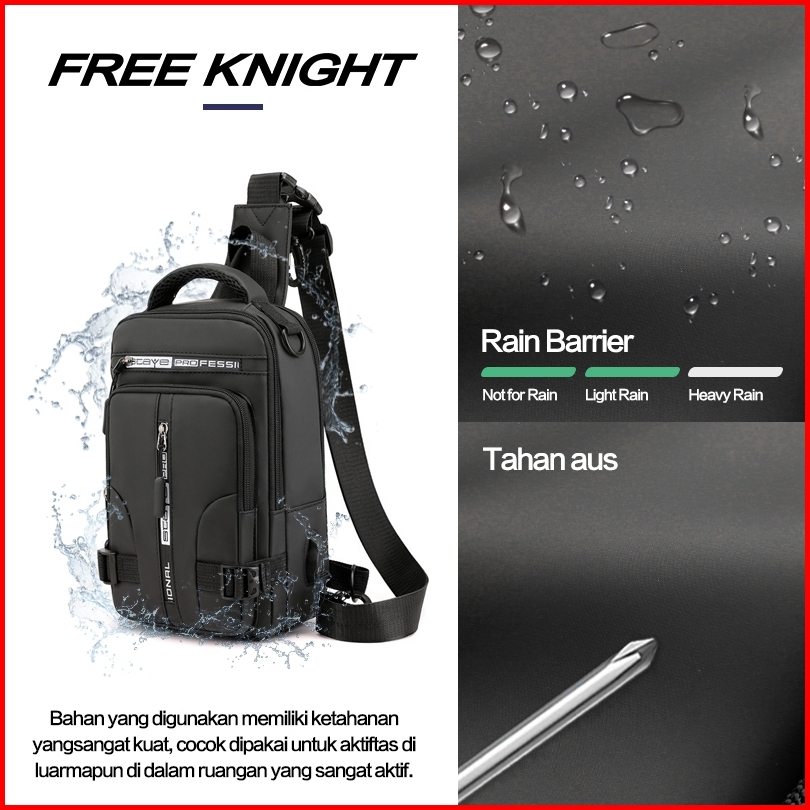 Freeknight Tas Selempang Pria Keren Multifungsi Sport Usb Charge Fashion Slempang Waterproof Ts713