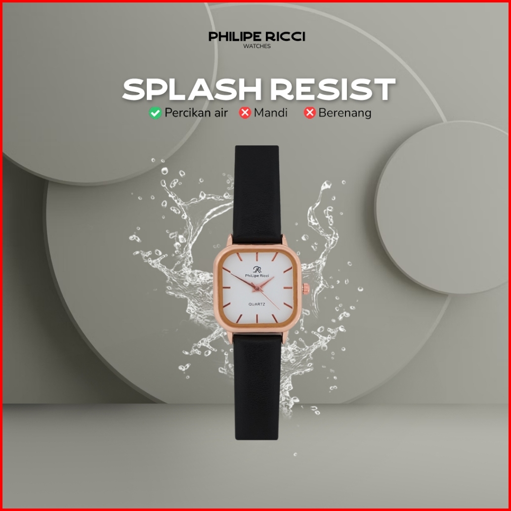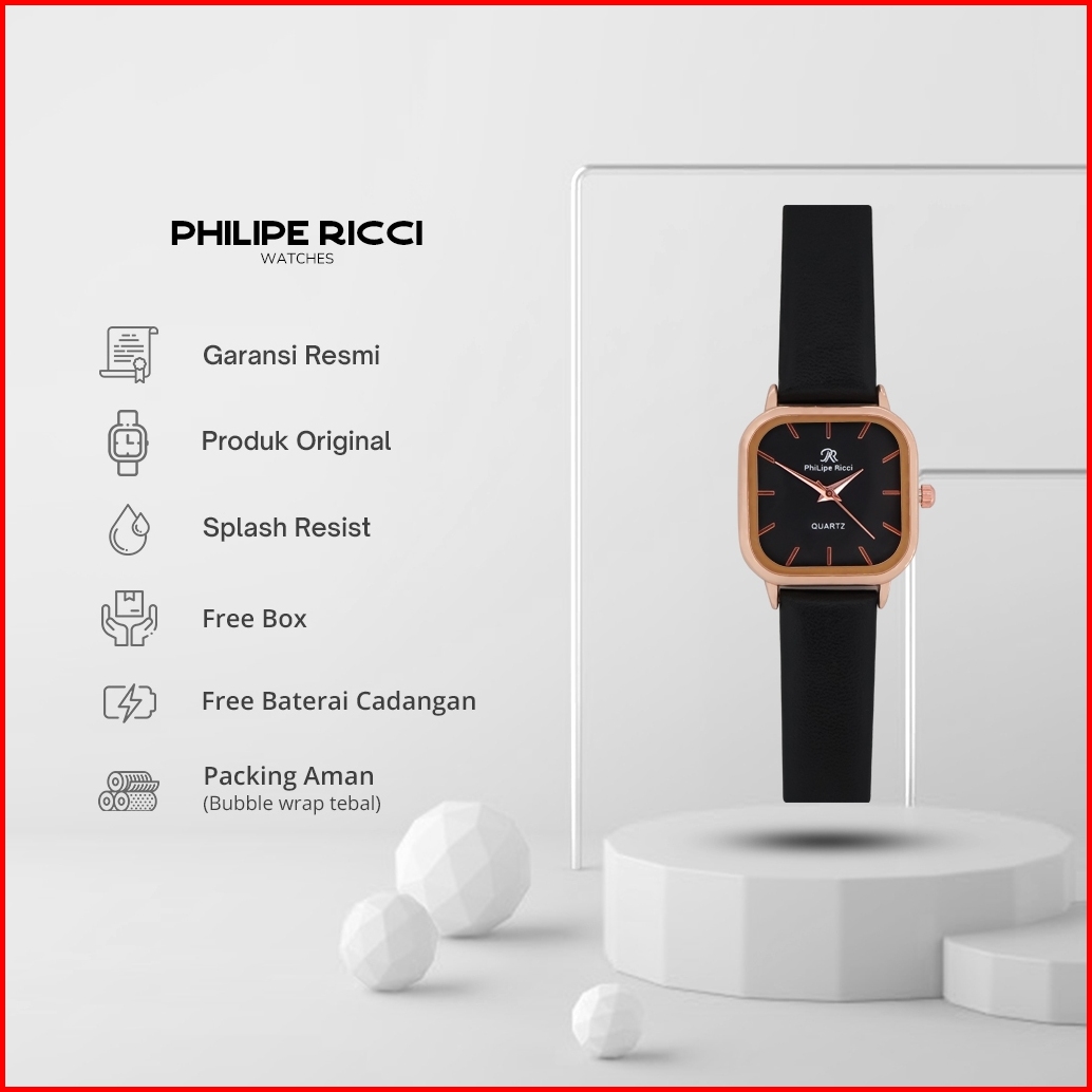 Philipe Ricci Jam Tangan Wanita Kulit Kecil Aesthetic Kotak Original 7487 Jam Cewek Mini Rose Hitam
