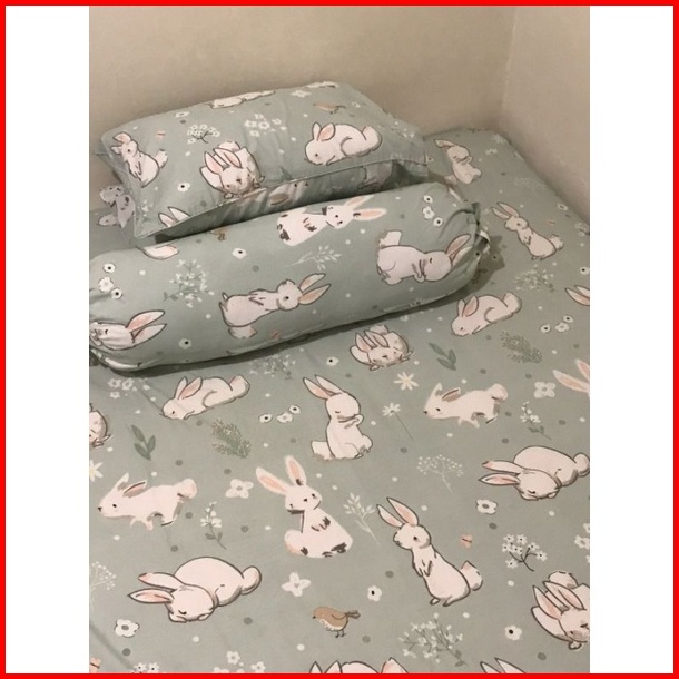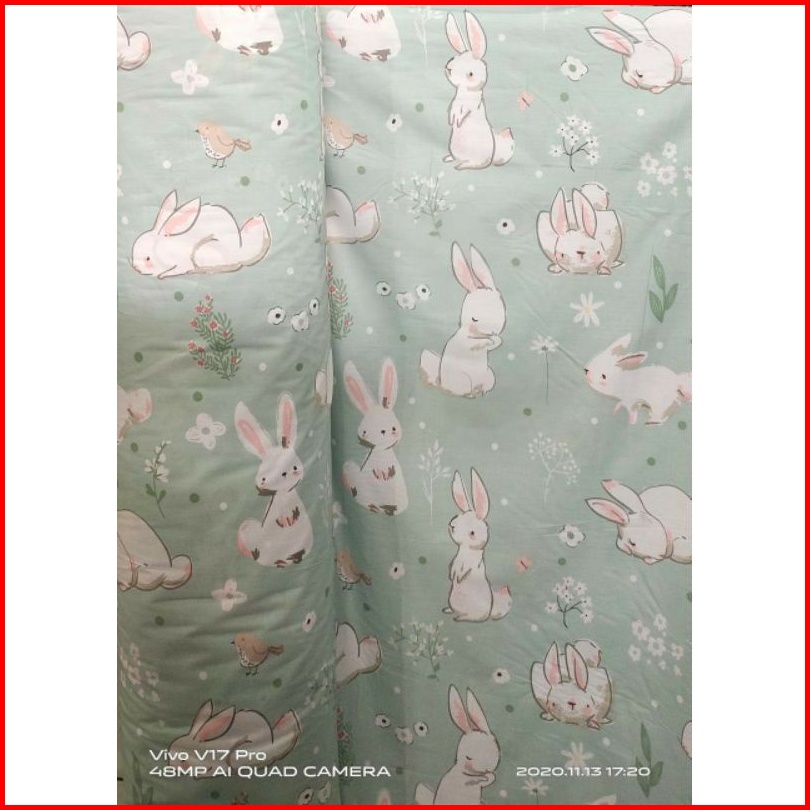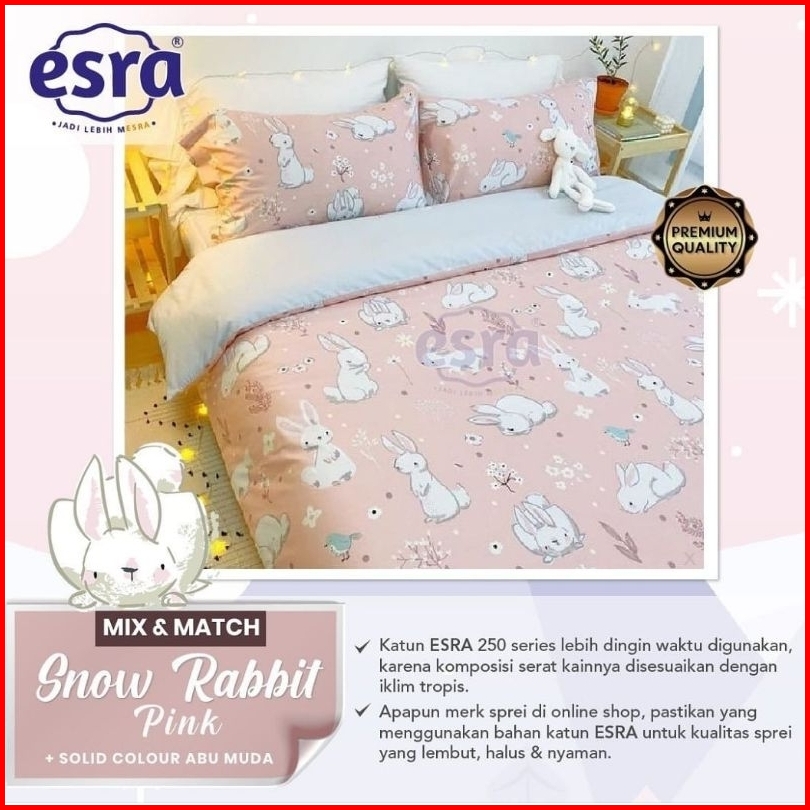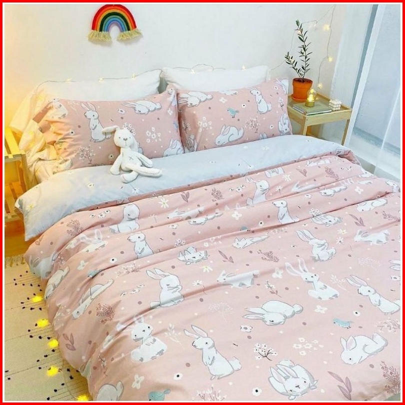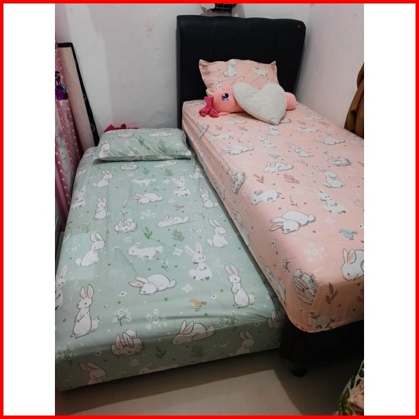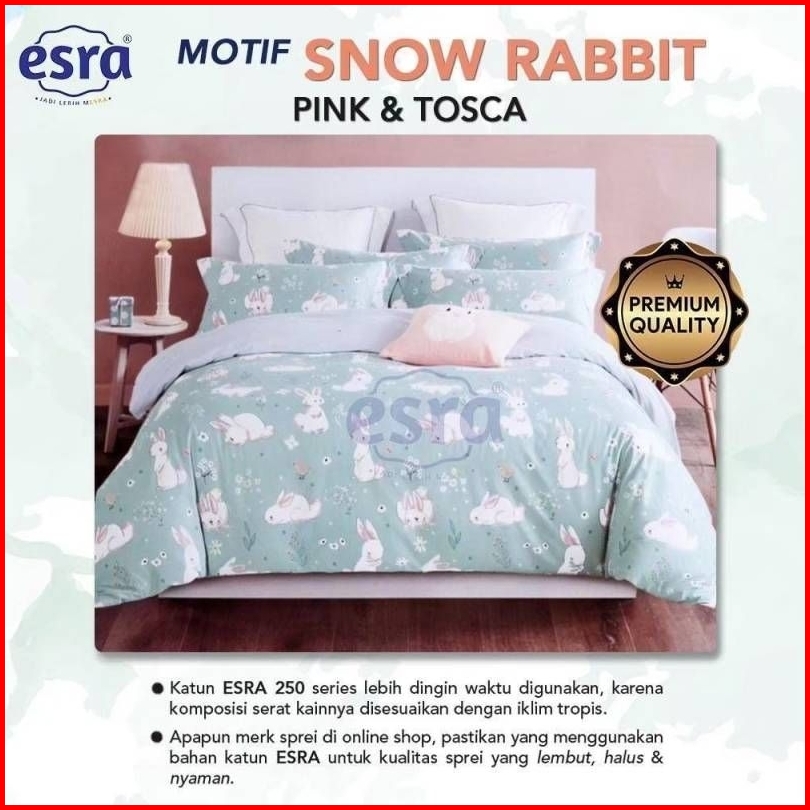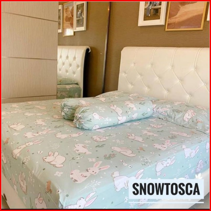 Sprei Homemade Sprei Katun Lokal Premium Sprei Anti Geser Katun Cvc Motif Snow Rabbit Pink Tosca