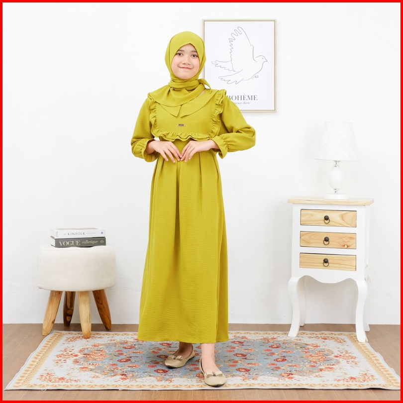 Alifia Dress Gamis Anak Perempuan Setelan Baju Muslim Anak Perempuan Usia 1-12 Tahun Crinkle Airflow Terbaru